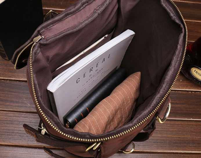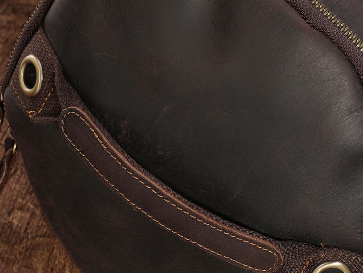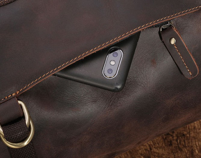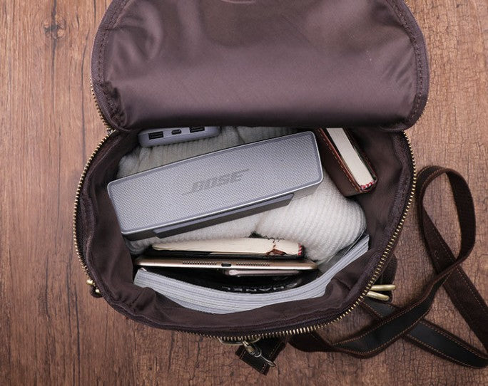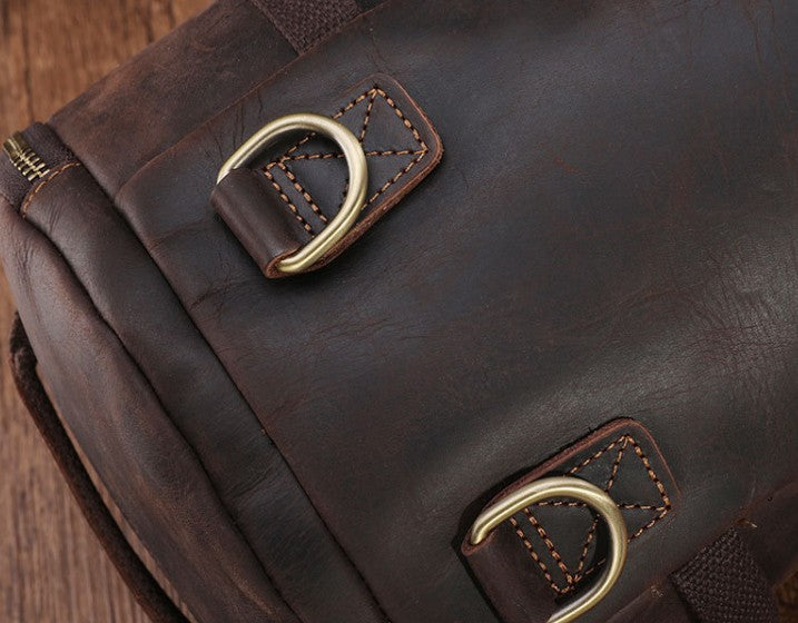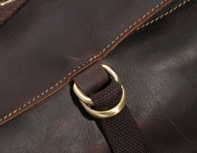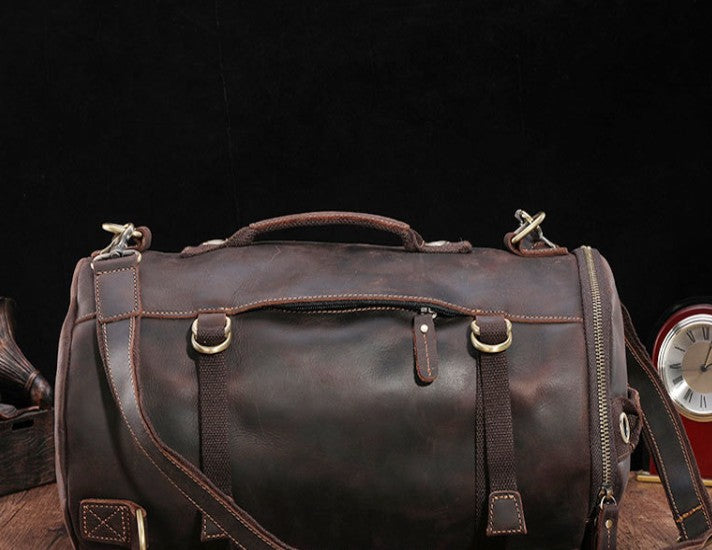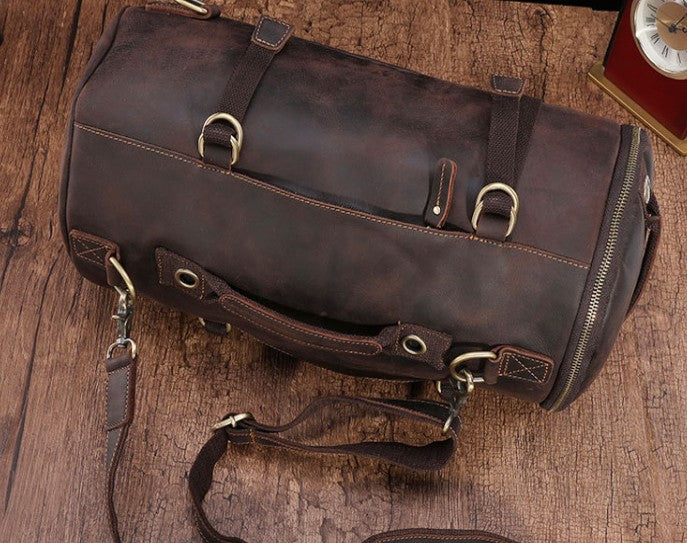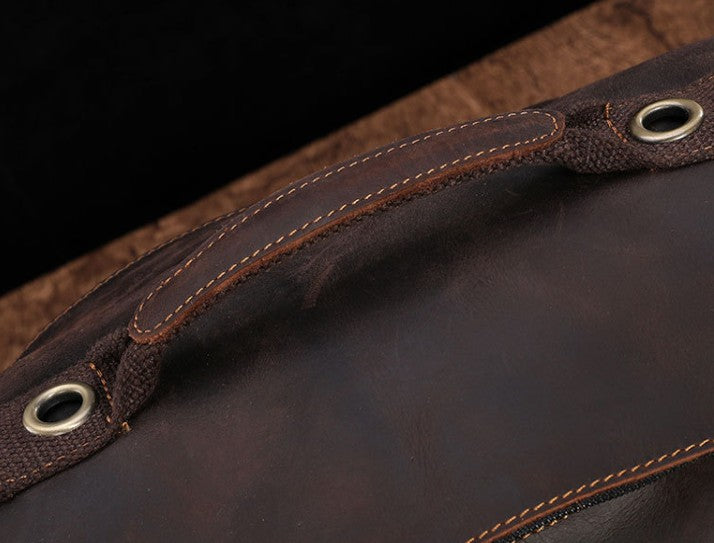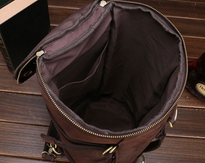 Design: Cool Mens Leather Barrel Backpack Overnight Bag Travel Backpack Weekender Bag for men