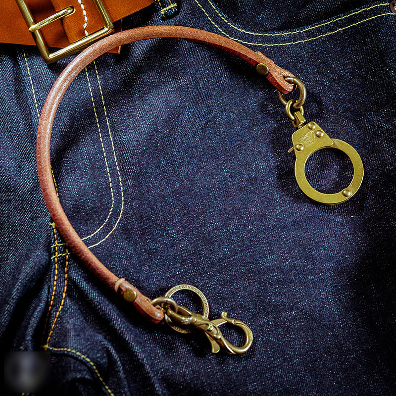 Style: Cool Men's Leather Gold Brass Hook Key Chain Pants Chain Biker Wallet Chain For Men