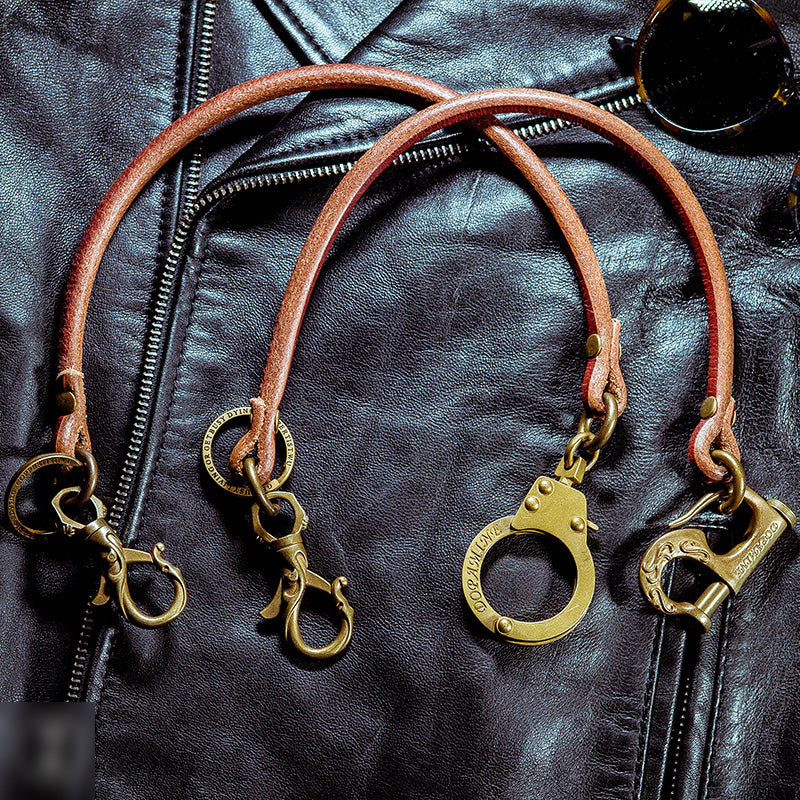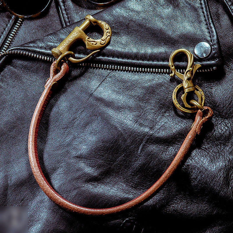Design: Cool Men's Leather Gold Brass Hook Key Chain Pants Chain Biker Wallet Chain For Men