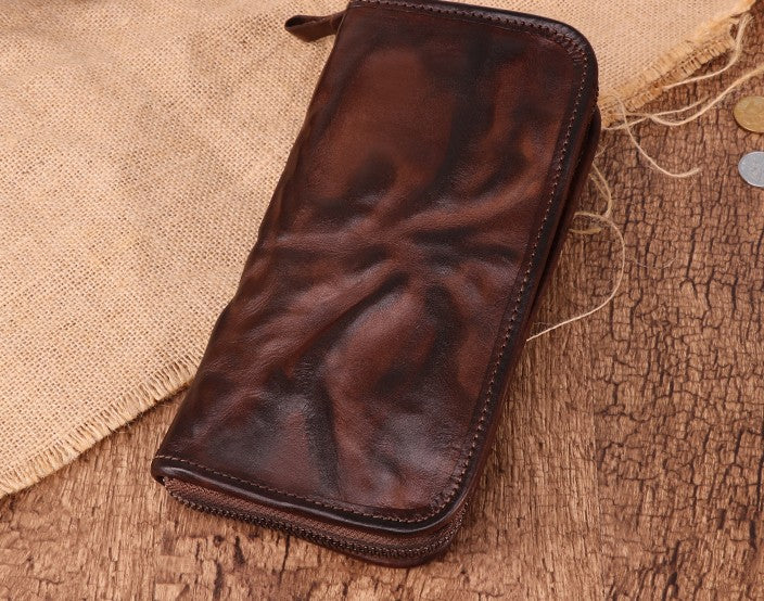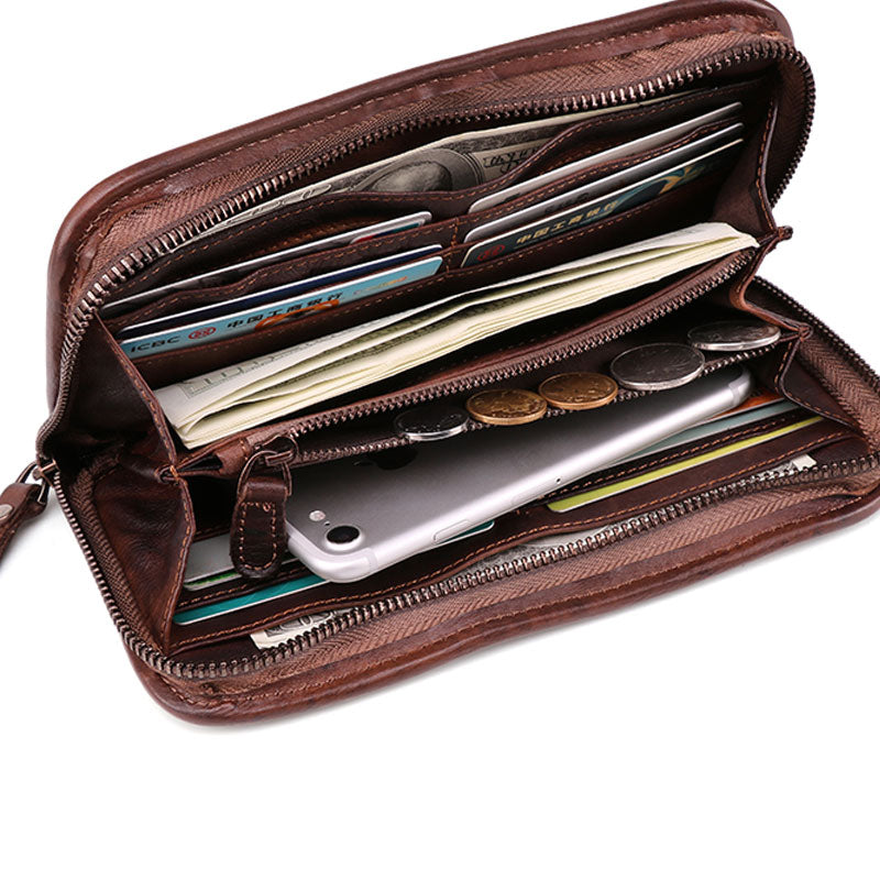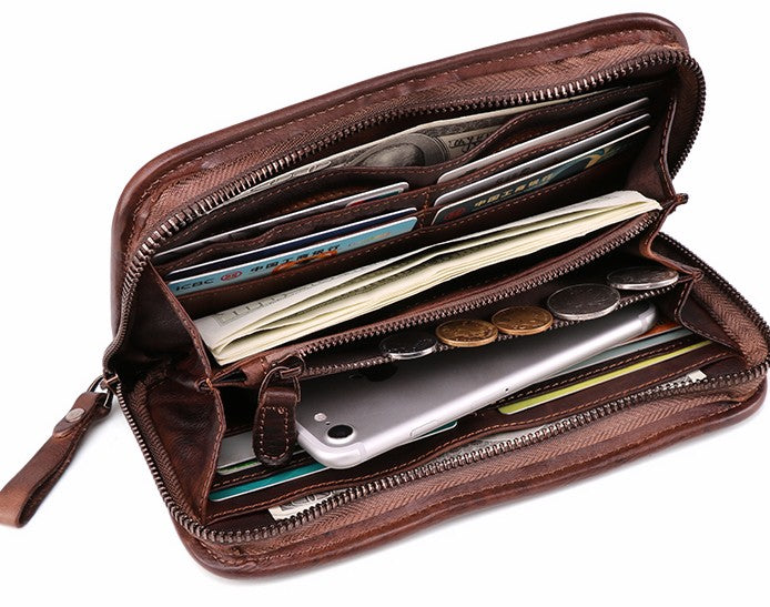 Style: Leather Slim Zipper Clutch Wristlet Purse Bag Clutch Bag Long Wallet For Men