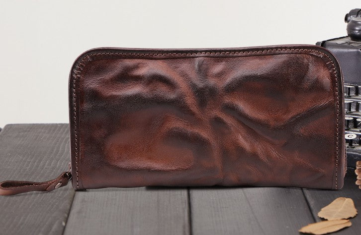 Design: Leather Slim Zipper Clutch Wristlet Purse Bag Clutch Bag Long Wallet For Men