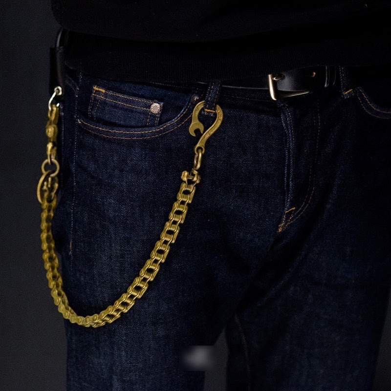 Design: Cool Men's Gold Brass Long Bike Chain Pants Chains Biker Wallet Chain For Men