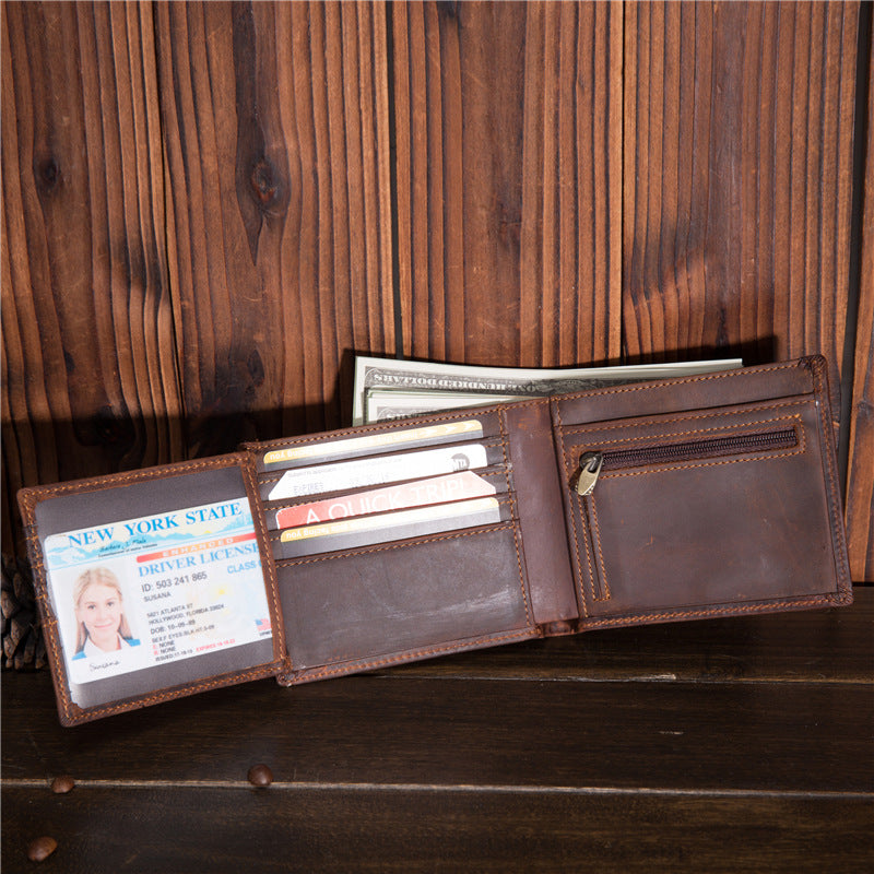 Style: Cool Leather Mens Small Wallet billfold Trifold Wallet Front Pocket Wallet for Men