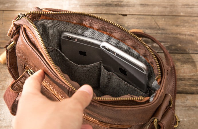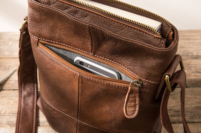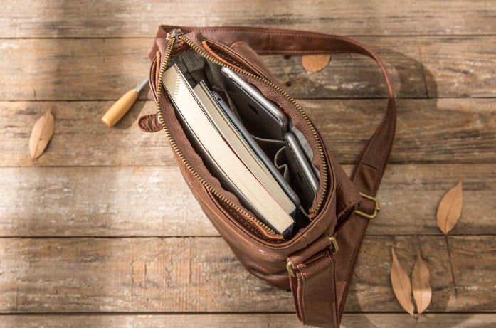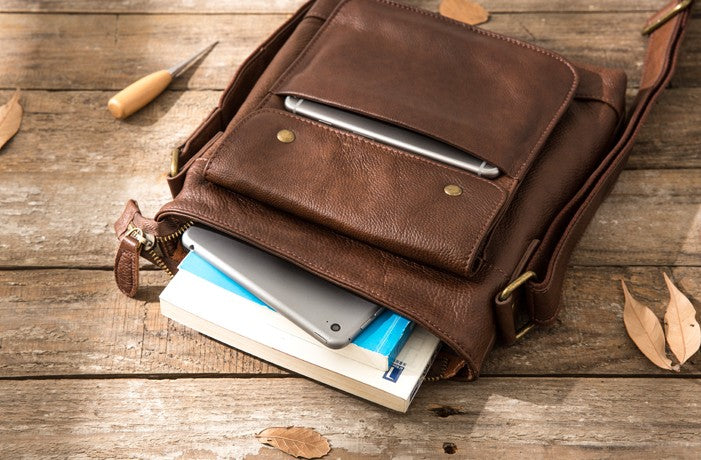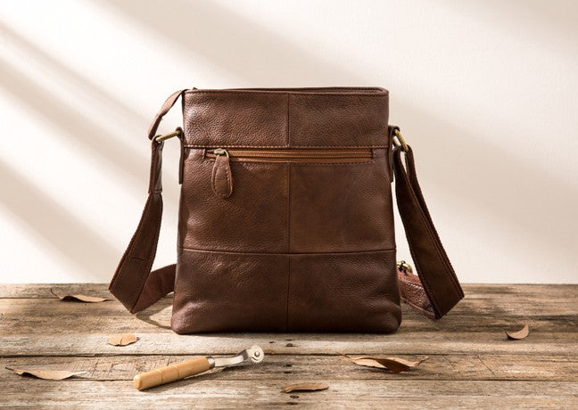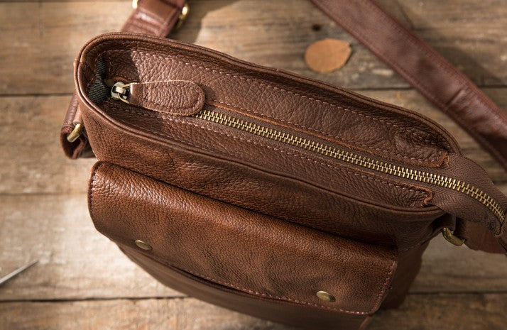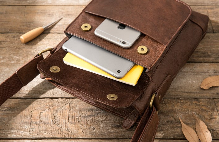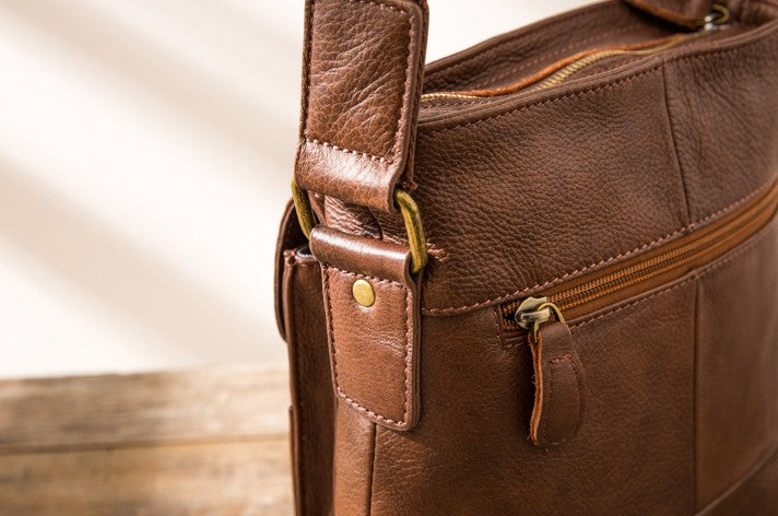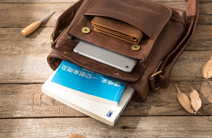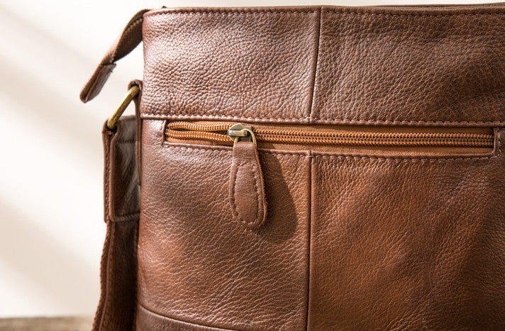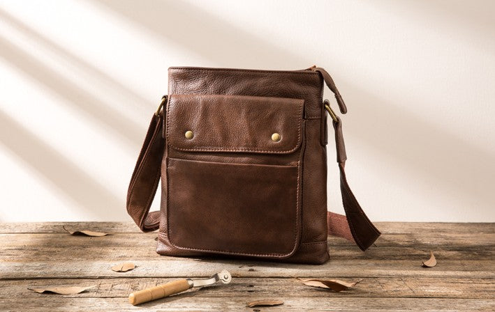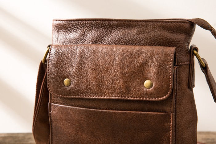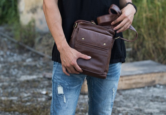 Style: Coffee Cool Leather Mens Shoulder Bags Messenger Bags for Men