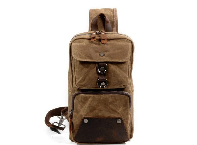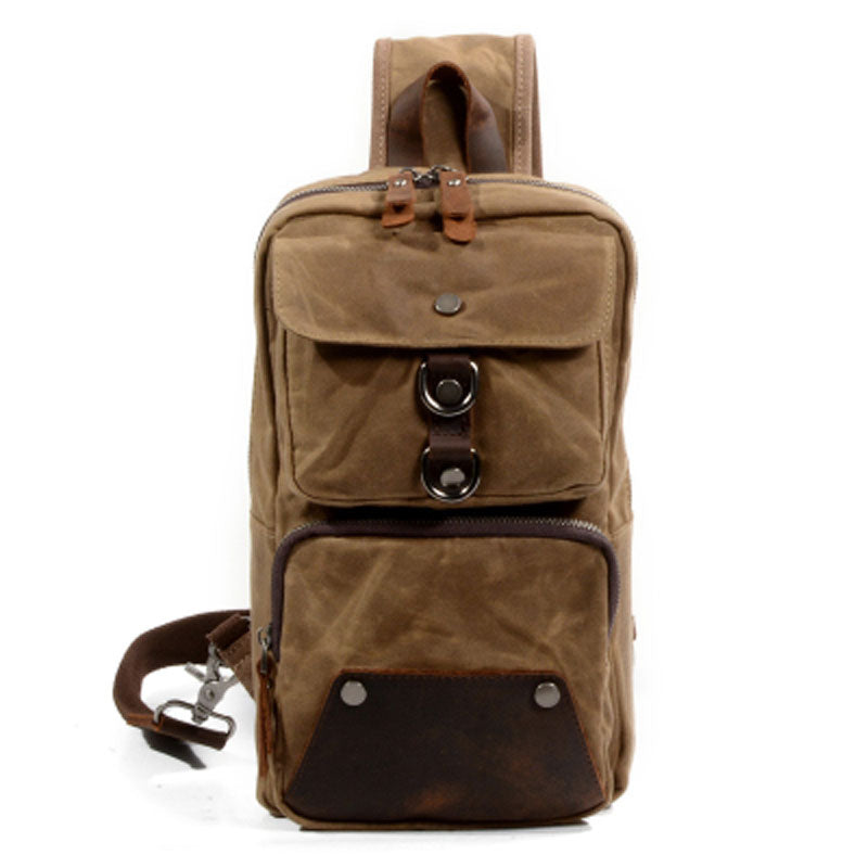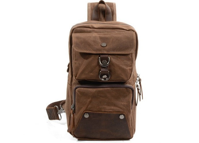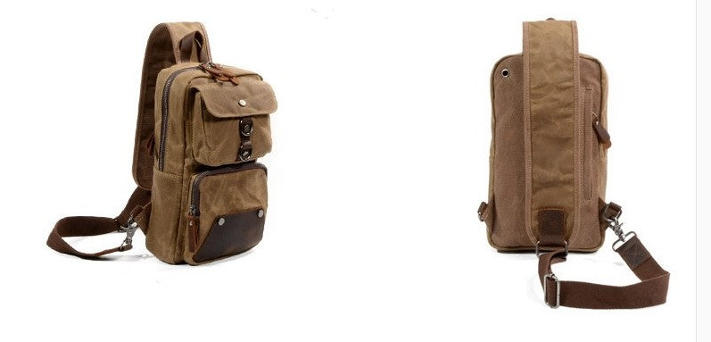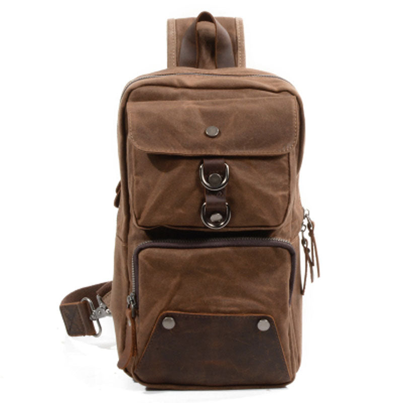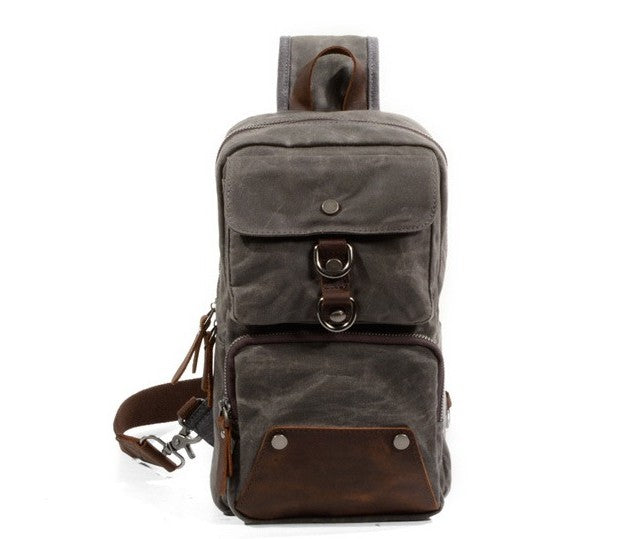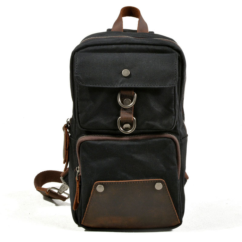 Design: Cool Waxed Canvas Leather Mens Chest Bag Sling Bag One Shoulder Packs for men