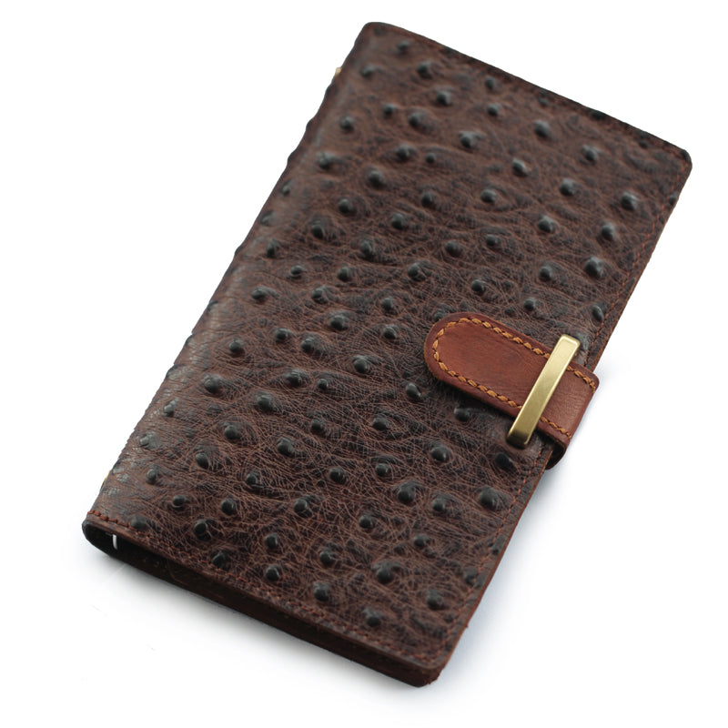 Design: Creative Handmade Ostrich Pattern Leather A6 Travel Notepad Brown Notebook For Men