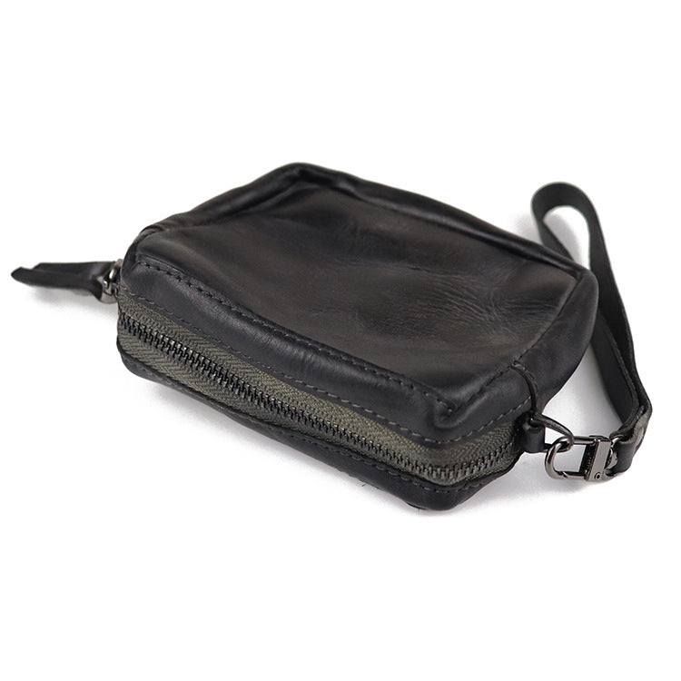 Style: Vintage Leather Brown Men's Coin Wallet Black Wristlet Change Wallet Card Holder For Men
