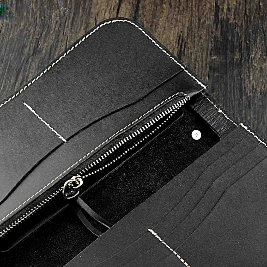 Design: Badass Black Leather Men's Long Biker Chain Wallet Long Wallet Chain For Men