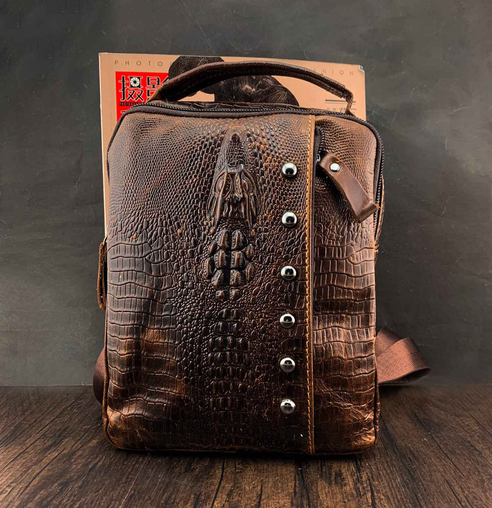 Design: Badass Brown Leather Men's Sling Bag Chest Bag One shoulder Backpack Sling Bag For Men