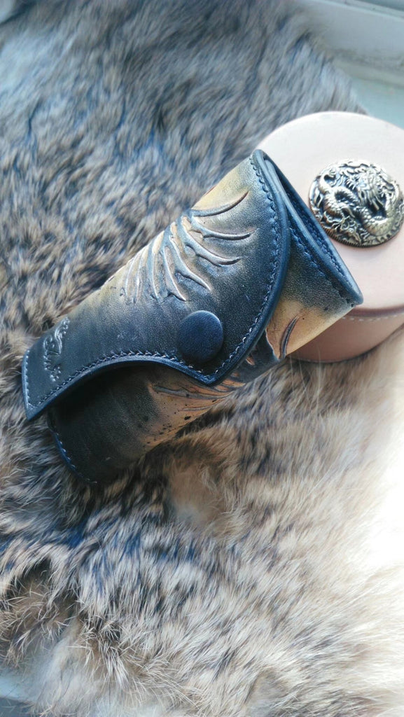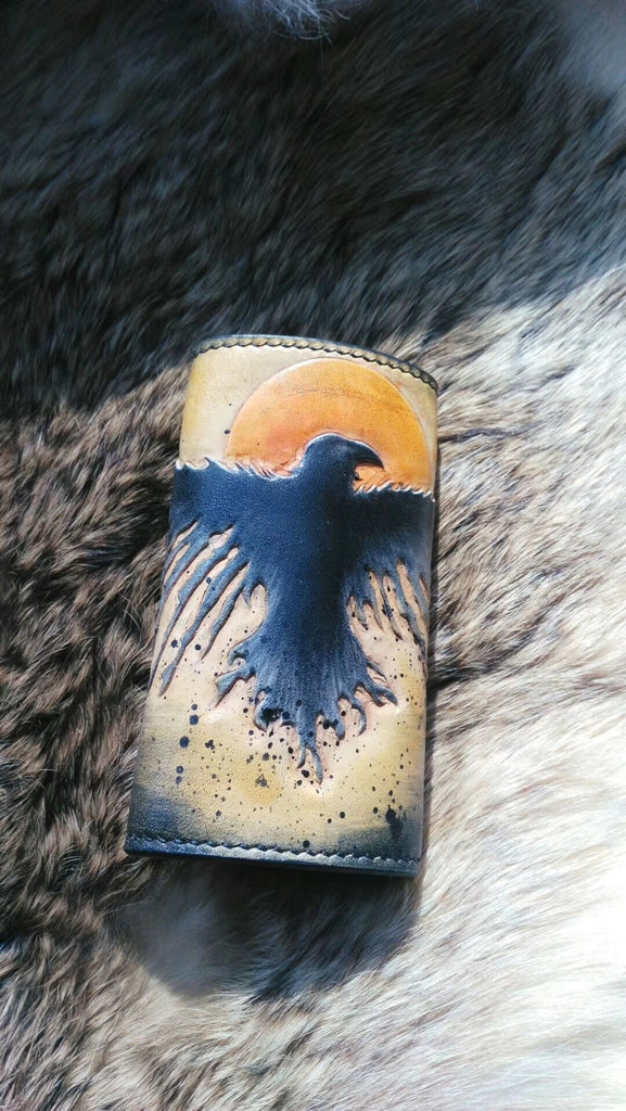 Design: Crow Tooled Leather Key Wallet Key Holders with Card Holder Crow Leather Key Wallets