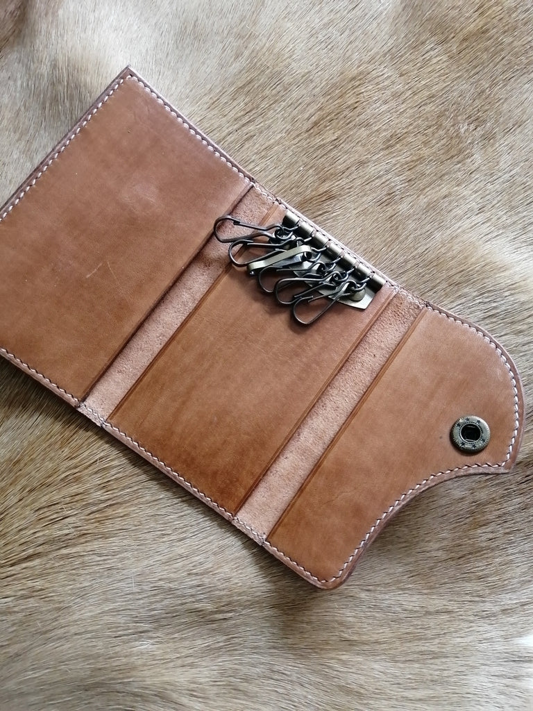 Style: Crow Tooled Leather Key Wallet Key Holders with Card Holder Crow Leather Key Wallets