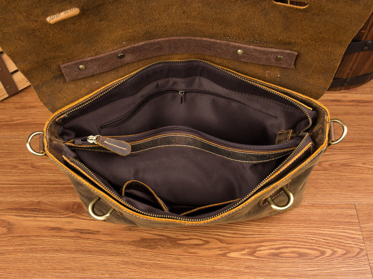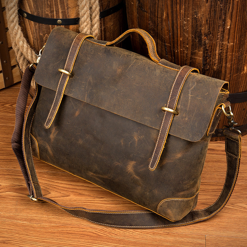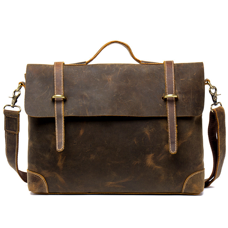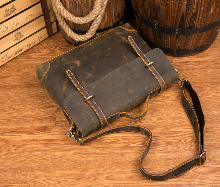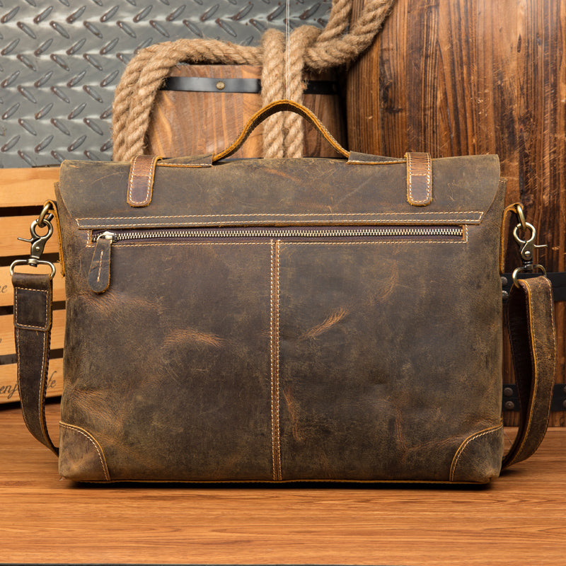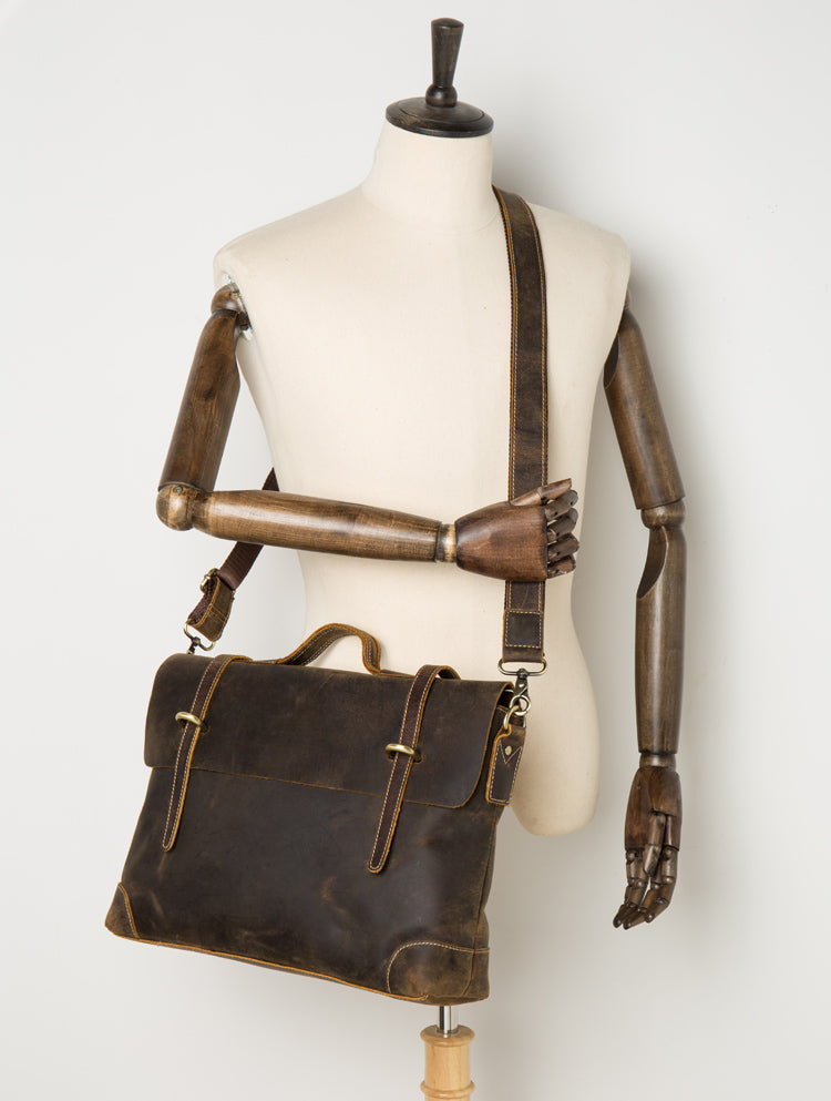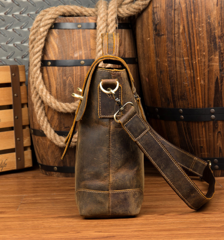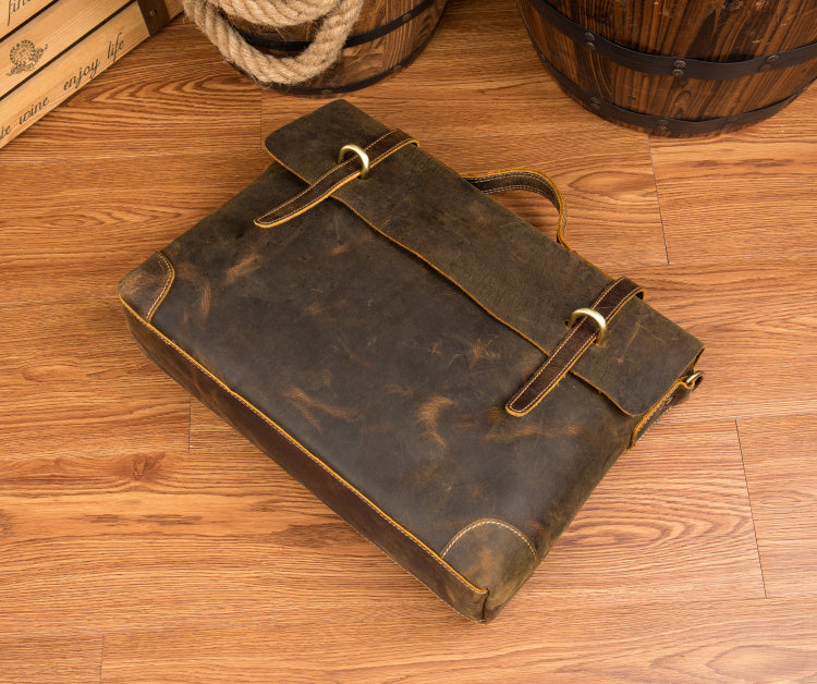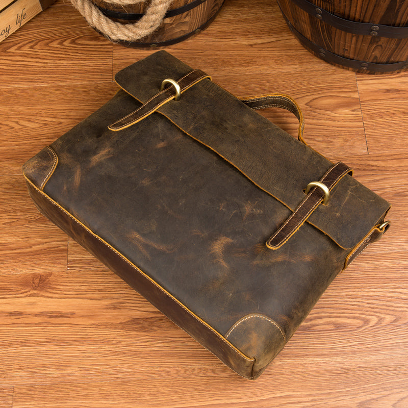 Vintage Dark Brown Leather 15 inches Briefcase Messenger Bags Work Side Bags for Men