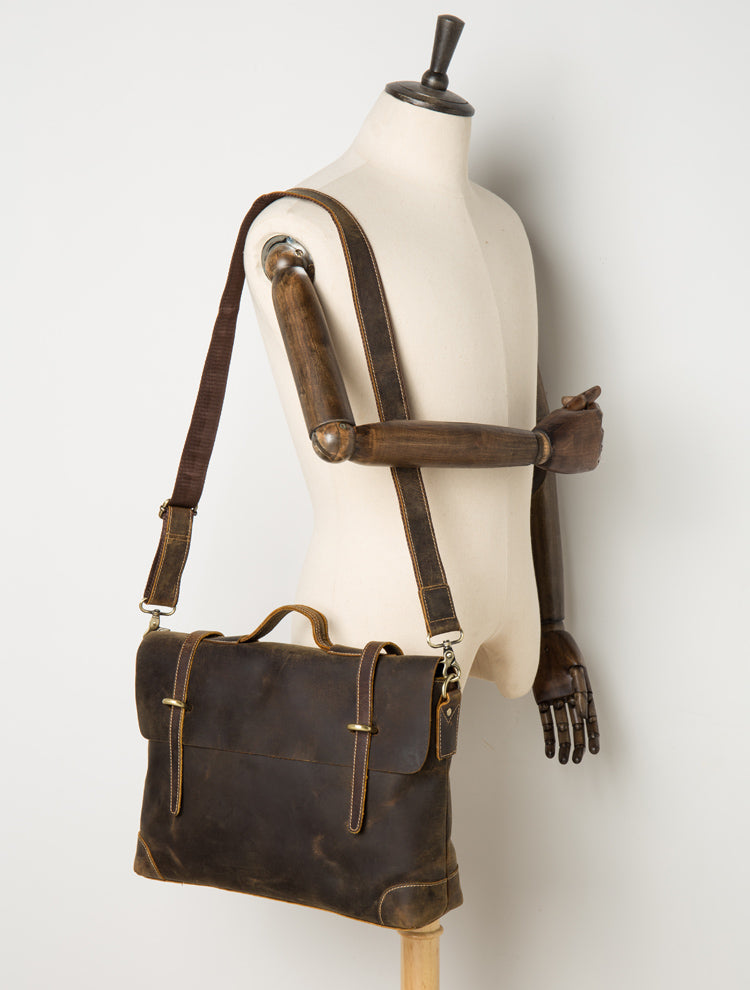 Design: Dark Brown Cool Leather 15 inches Shoulder Bag Messenger Bags Crossbody Bags for Men