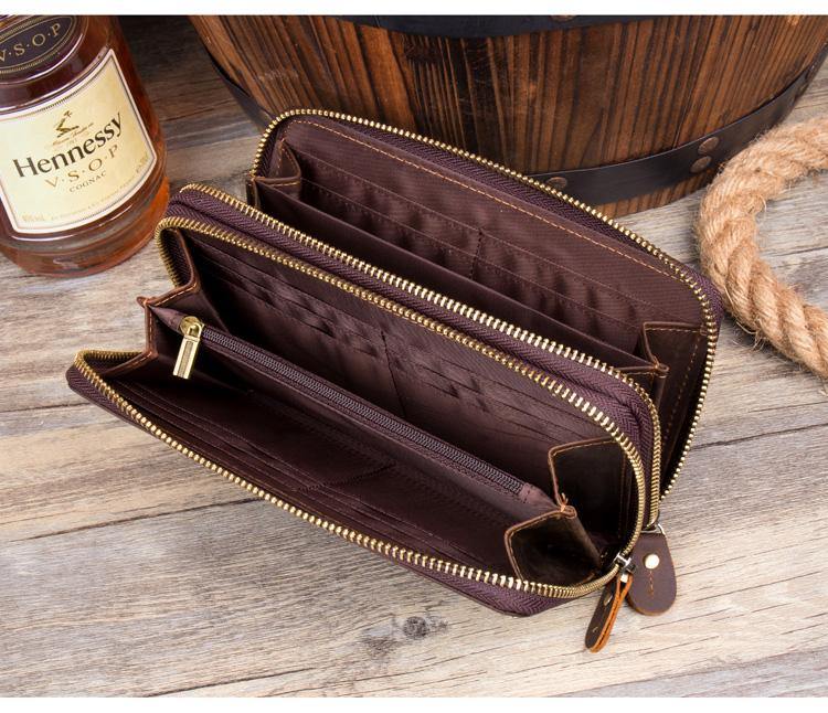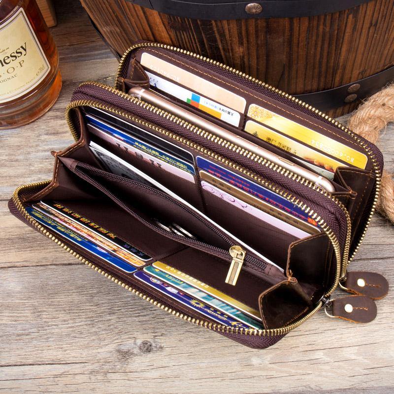 Design: Dark Brown Cool Mens Bifold Long Wallet Mutlicard Wallet Clutch Bag Coin Purse for Men