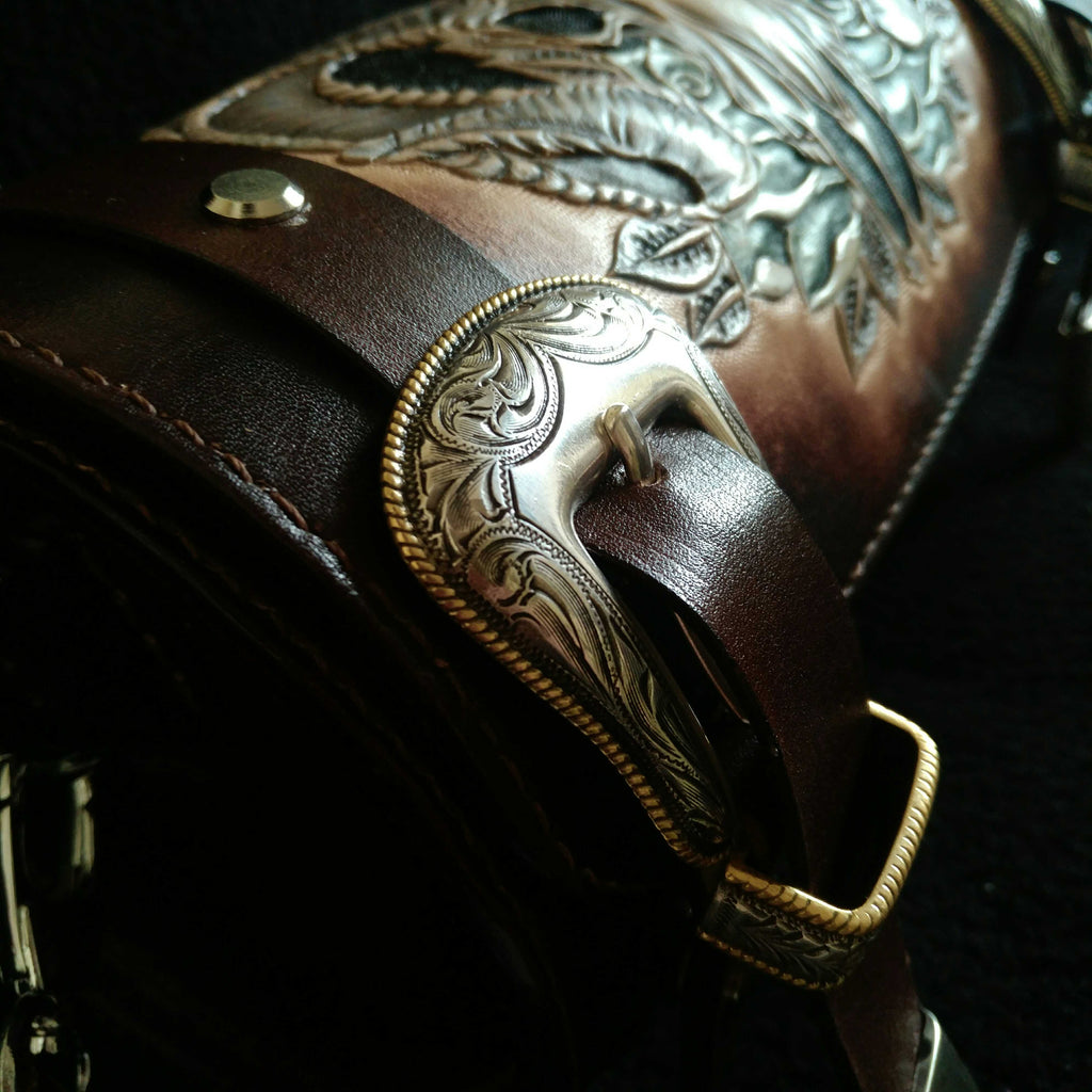 Design: Cool Handmade RAM Skull Tooled Leather Mens Biker Saddle Bag Biker Barrel Side Bag Messenger Bag For MenOverview: