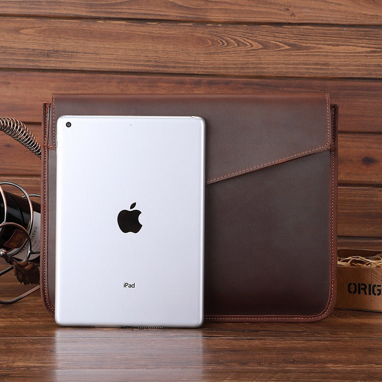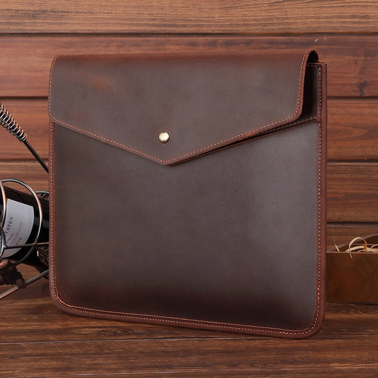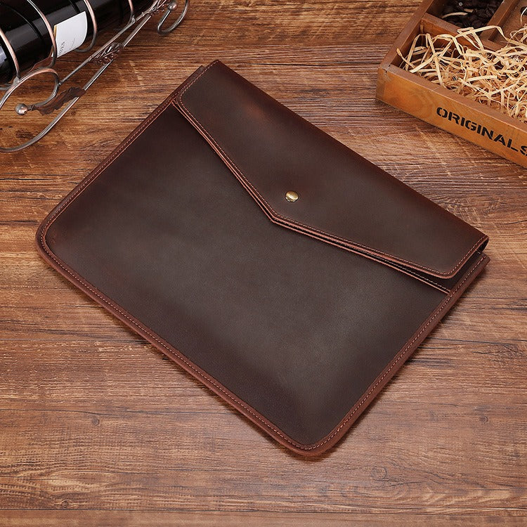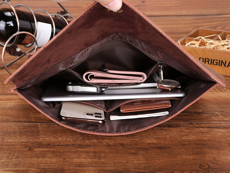 Style: Dark Brown Envelope Bag Mens Leather Office Documents Bags A4 Paper File Pouch Clutch Bag