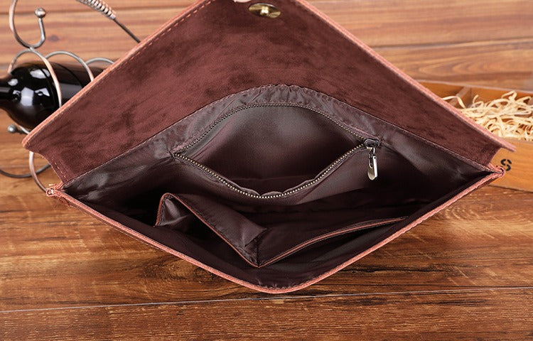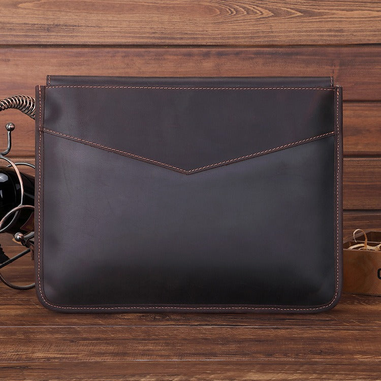 Design: Dark Brown Envelope Bag Mens Leather Office Documents Bags A4 Paper File Pouch Clutch Bag