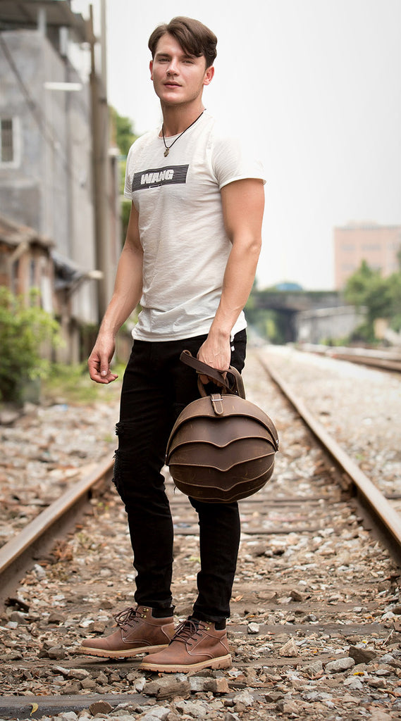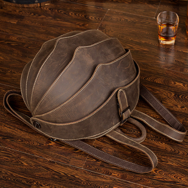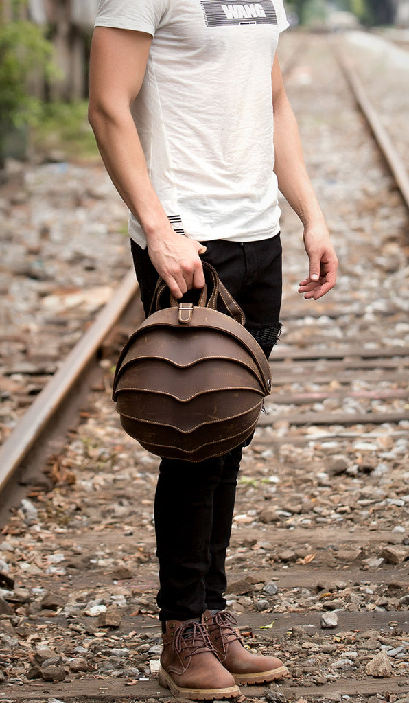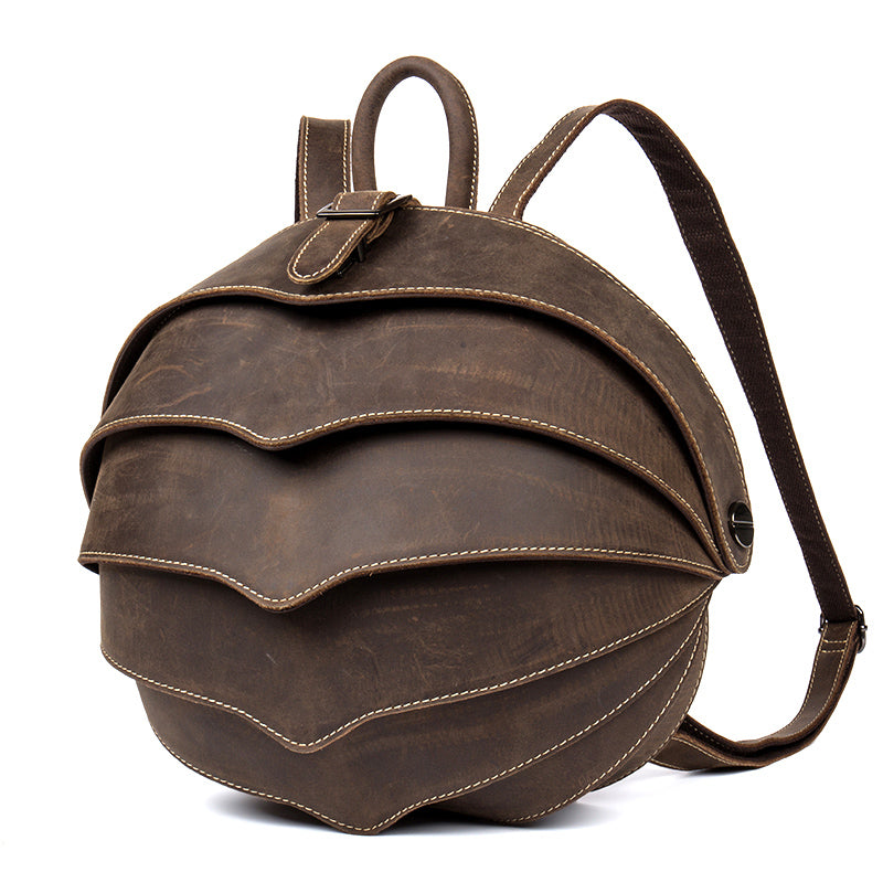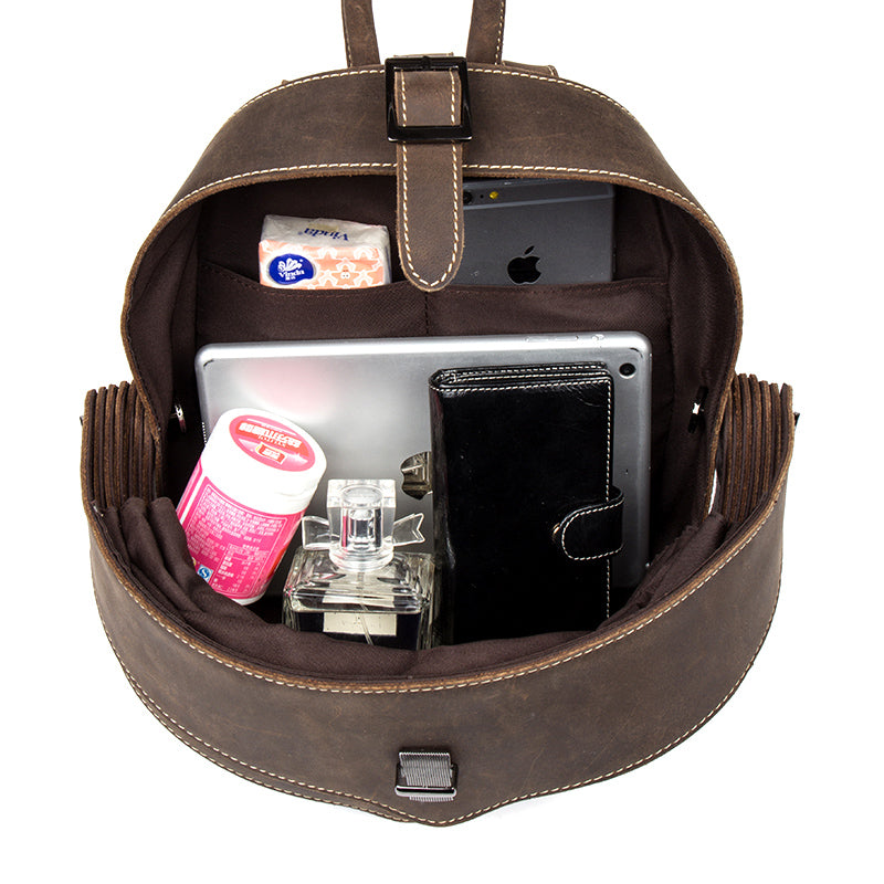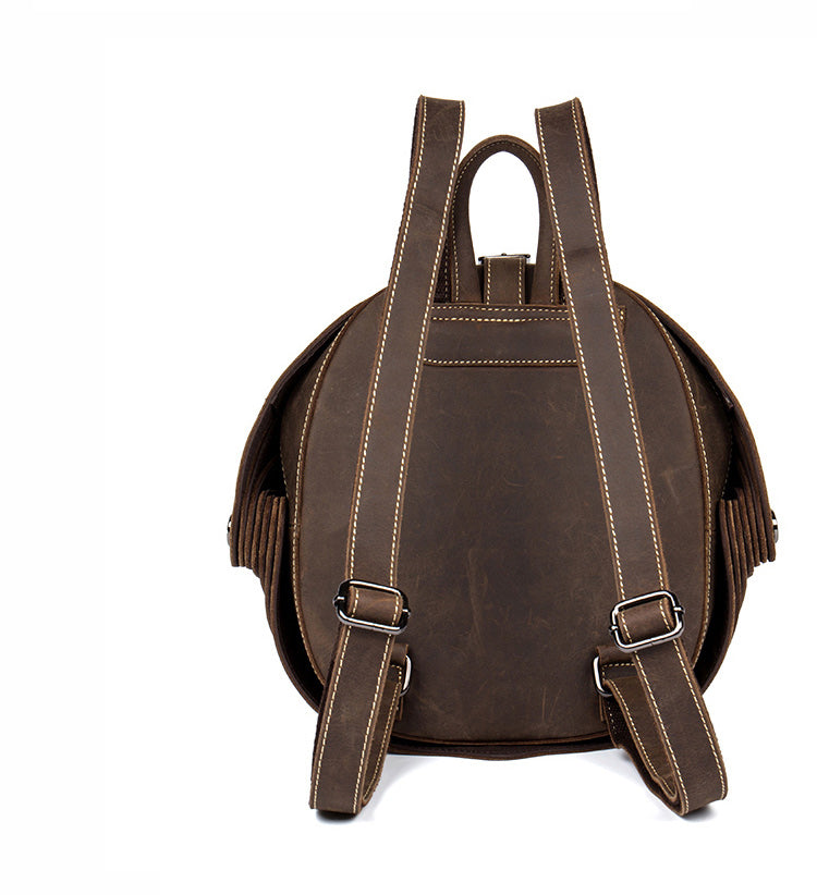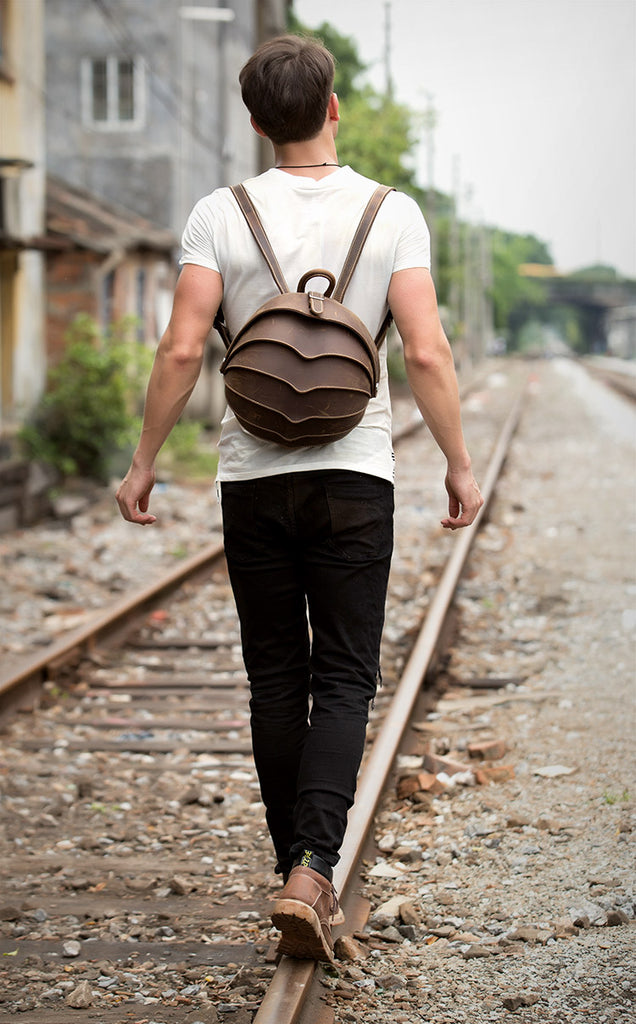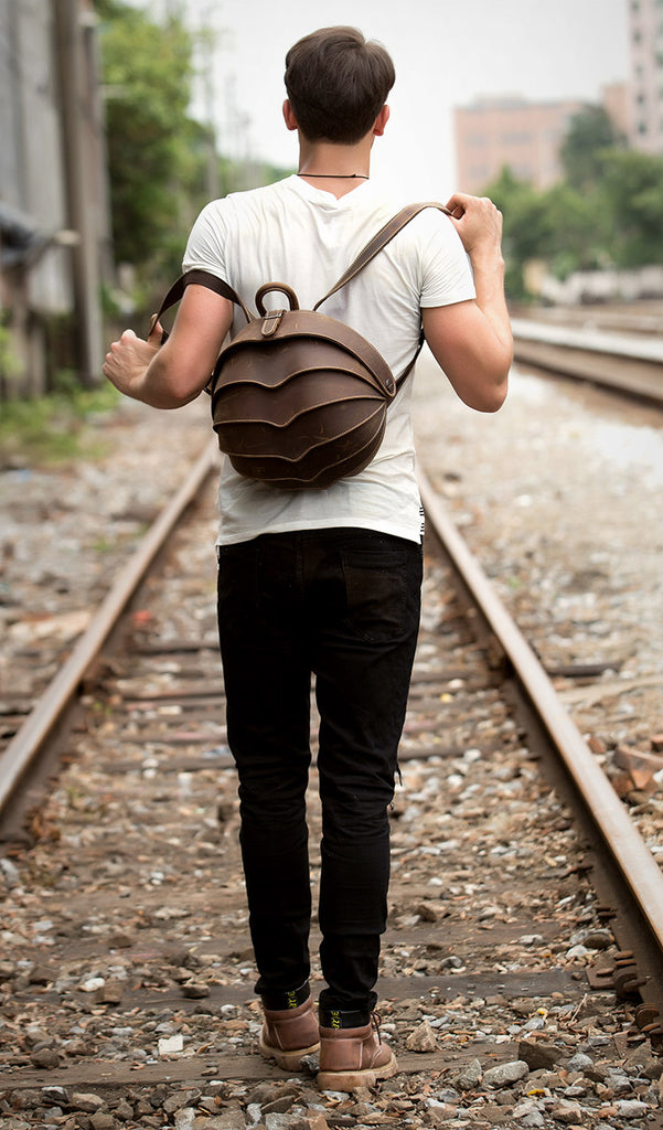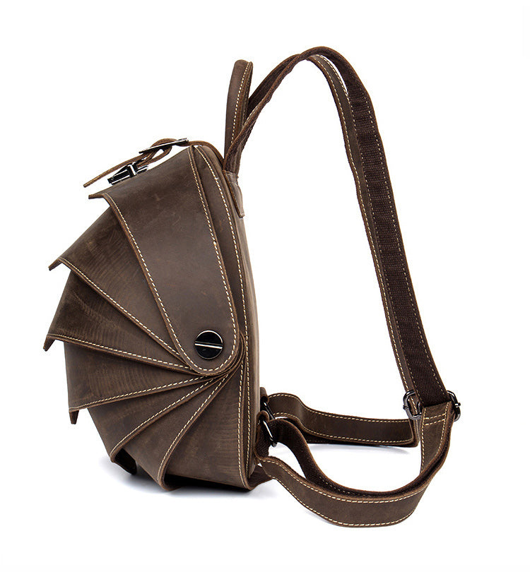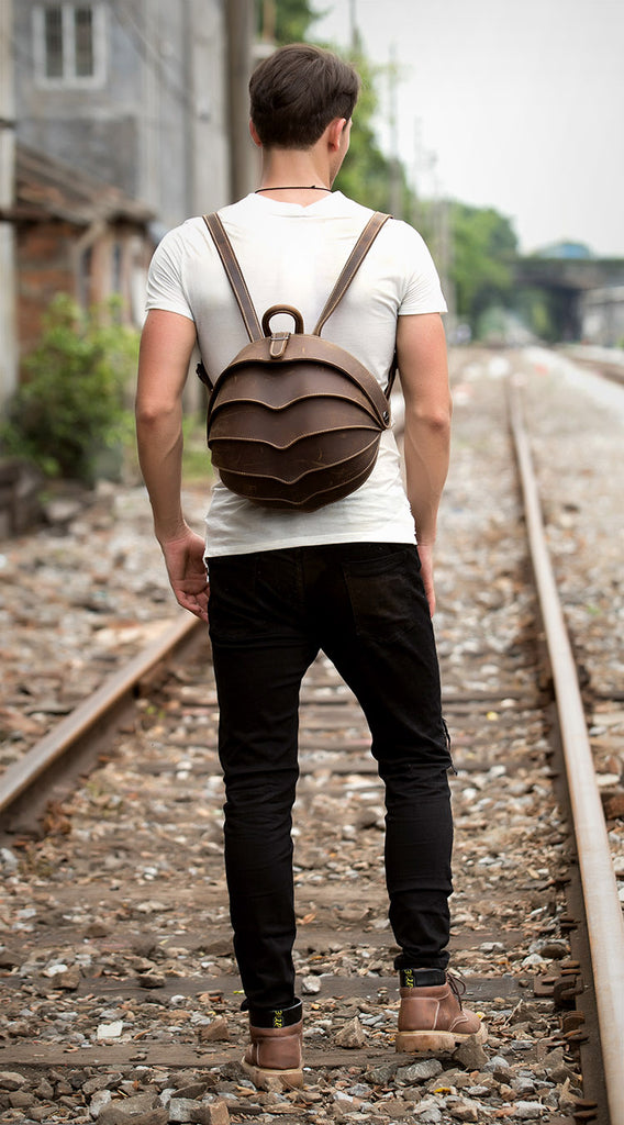 Design: Dark Brown Fashion Mens Leather 10-inch Computer Backpacks Cool Beetle Backpacks School Backpack for men