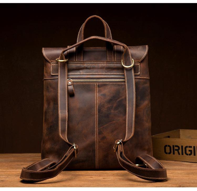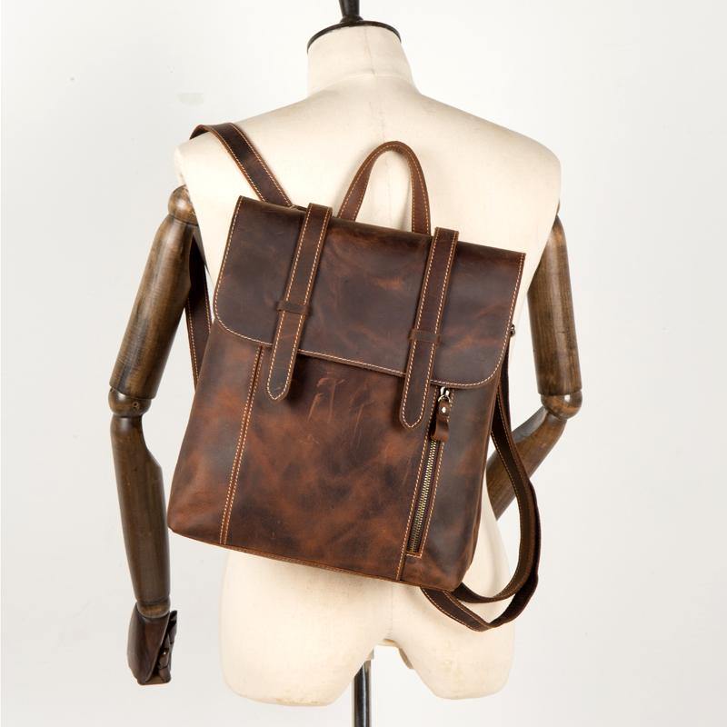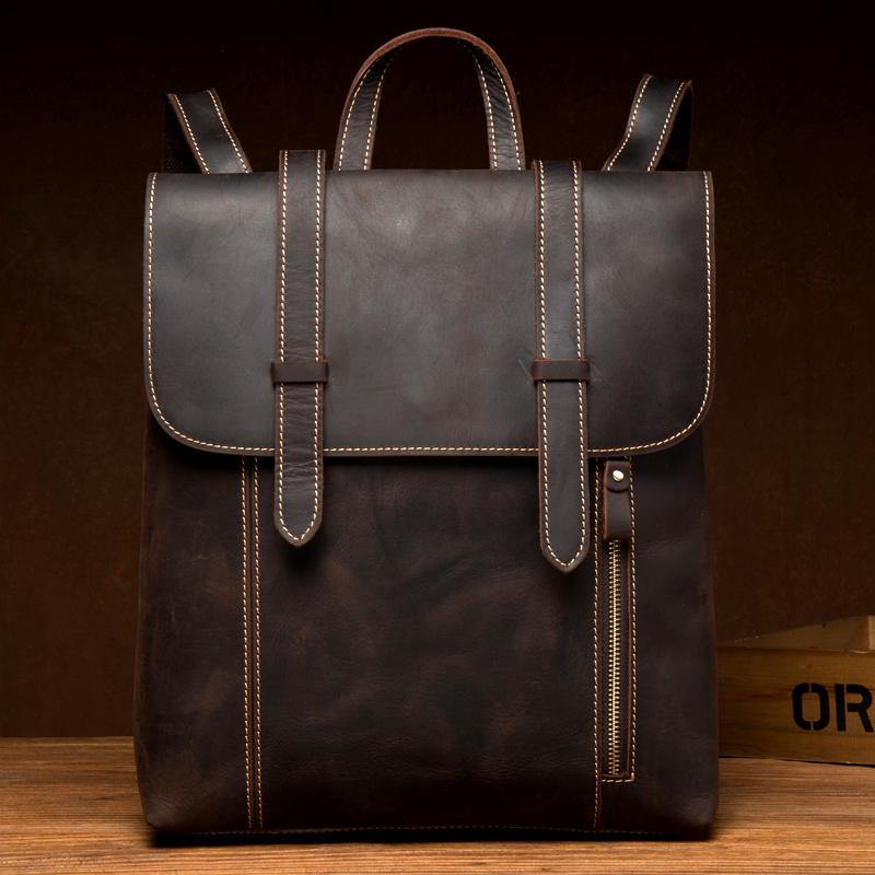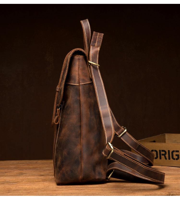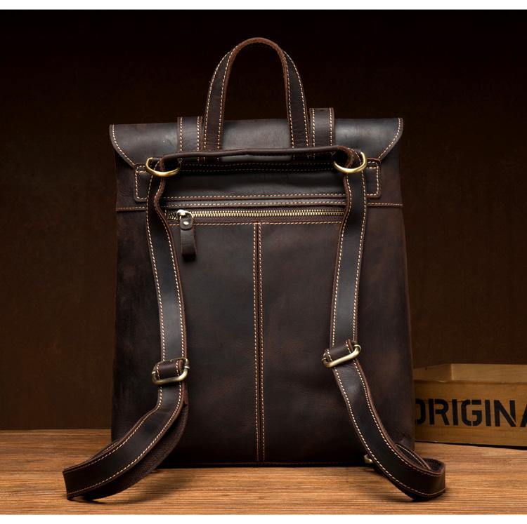 Design: Dark Brown Fashion Mens Leather 13-inch Computer Backpack Brown Travel Backpacks School Backpacks for men
