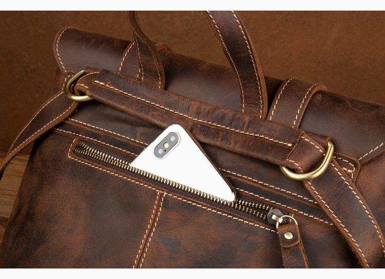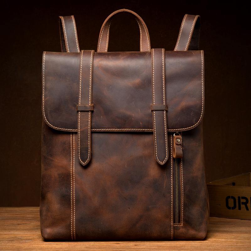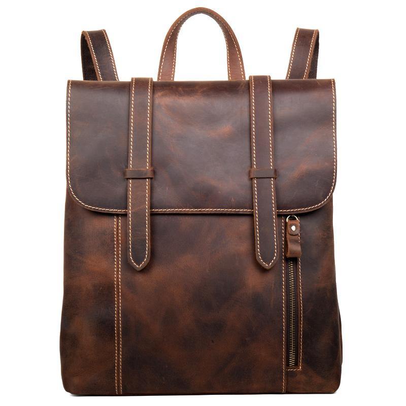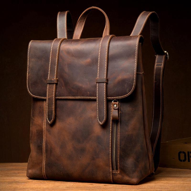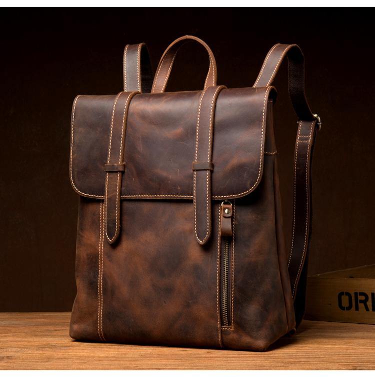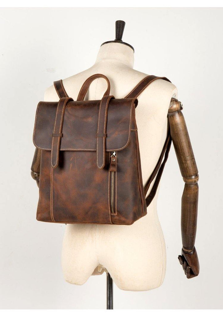 Design: Dark Brown Fashion Mens Leather 13-inch Computer Backpack Brown Travel Backpacks School Backpacks for men