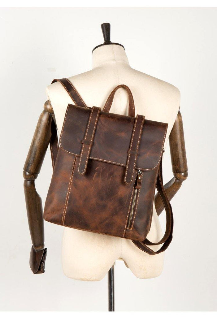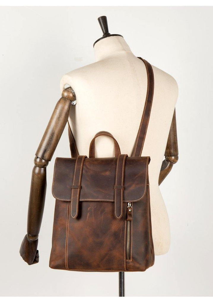 Style: Dark Brown Fashion Mens Leather 13-inch Computer Backpack Brown Travel Backpacks School Backpacks for men