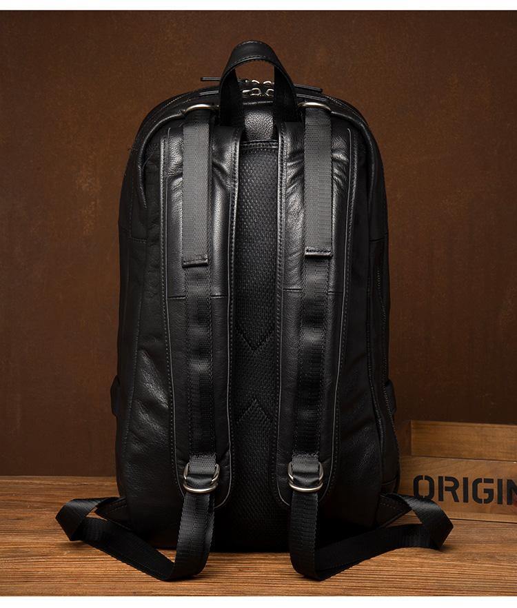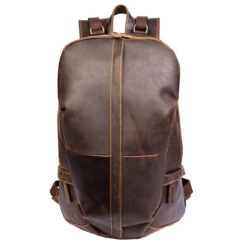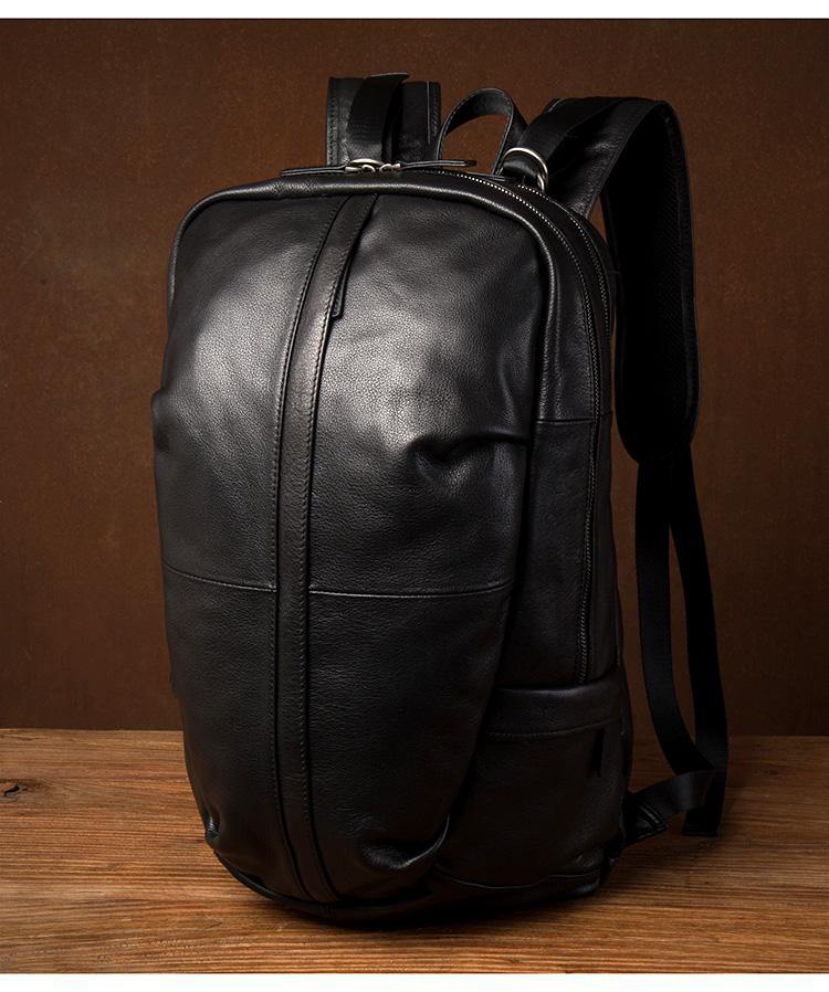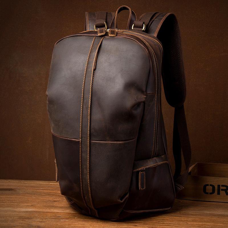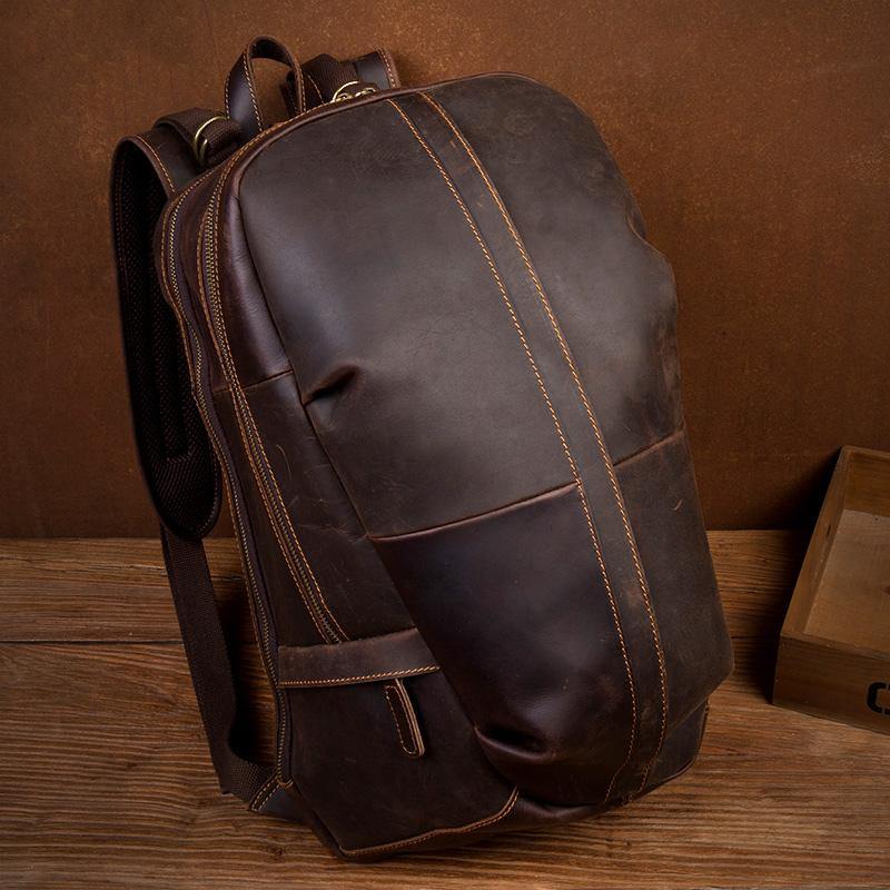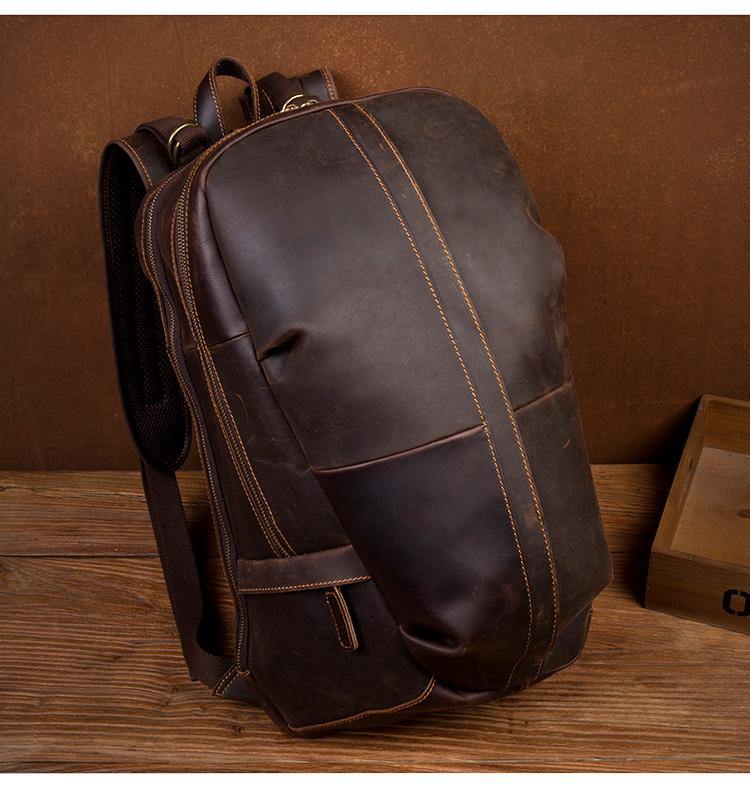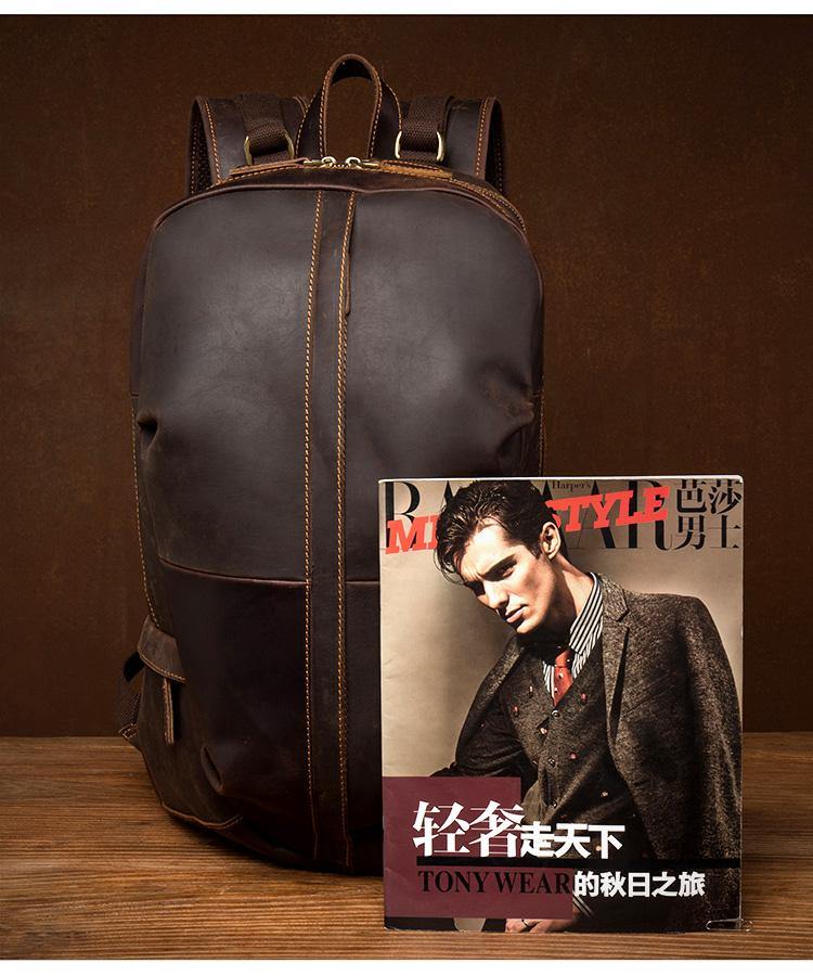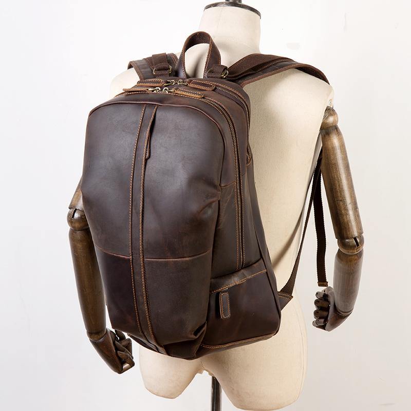 Design: Dark Brown Fashion Mens Leather 15-inch Computer Backpacks Black Travel Backpacks School Backpacks for men