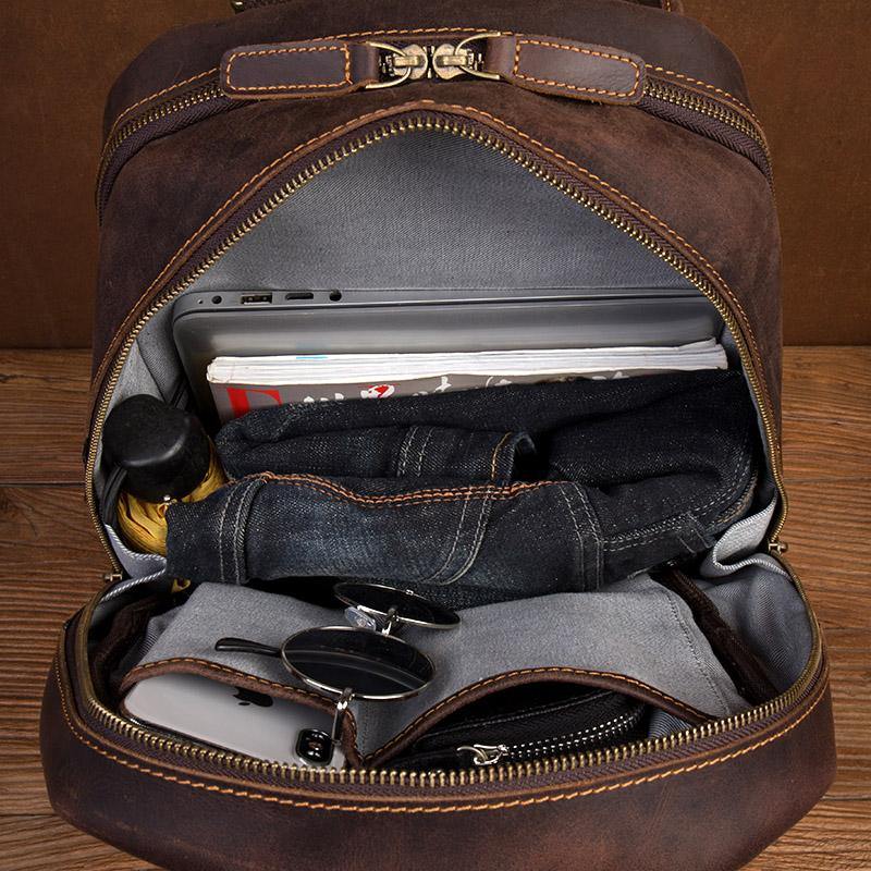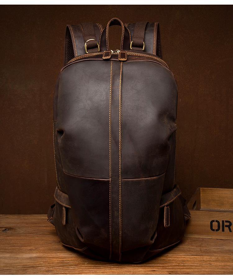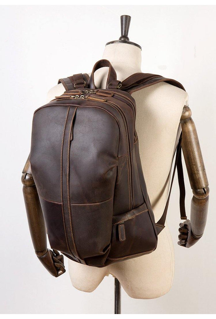 Style: Dark Brown Fashion Mens Leather 15-inch Computer Backpacks Black Travel Backpacks School Backpacks for men