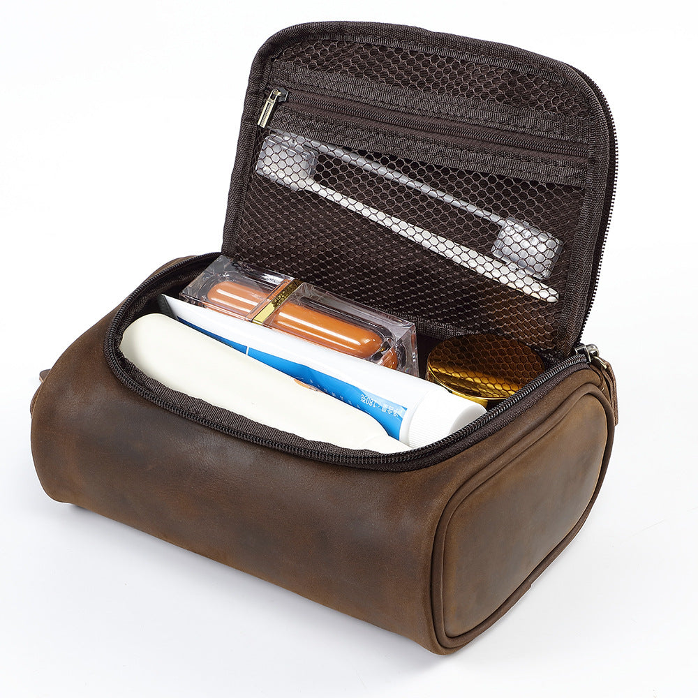 Design: Brown Full Grain Leather Toiletry Bag Leather Toiletry Bag Men's Leather Toiletry Bag