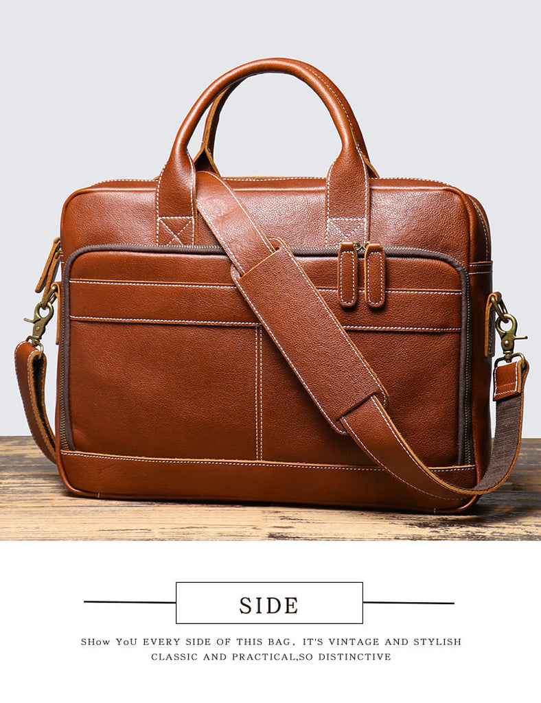 Style: Brown Leather 14 inches Laptop Briefcase Brown Leather Briefcase for Men
