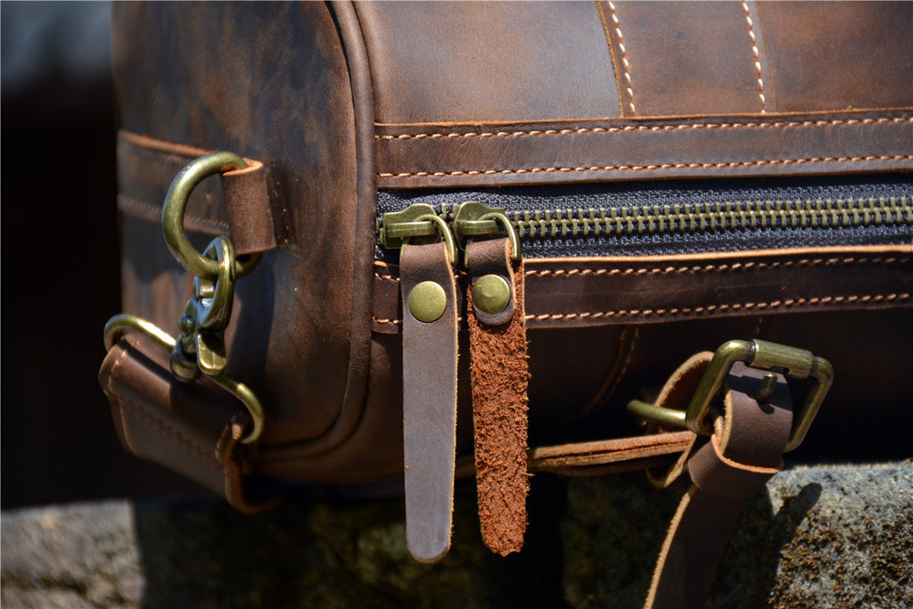 Discover the perfect blend of rugged charm and modern functionality with our Leather Barrel Crossbody Bag, a uniquely shaped accessory that combines classic design with practical organization. This distinctive Barrel Leather Bag features a rounded, Boston-inspired silhouette measuring 29cm x 17cm x 14cm, expertly crafted from premium full-grain crazy horse leather in two rich texture options: smooth vintage or textured rustic finish. Available in versatile color variations, this stylish Barrel Shoulder Bag offers both crossbody and shoulder carry options with its detachable, adjustable strap, making it the ideal everyday companion for the modern man on the move.