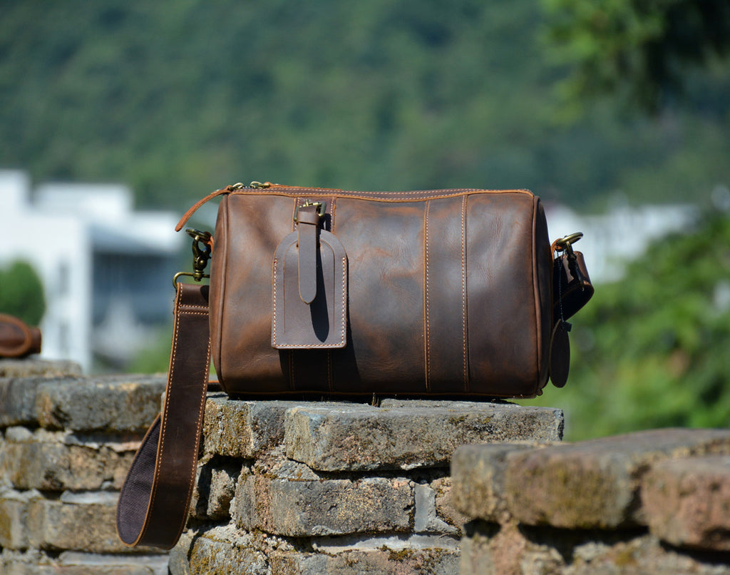 Leather Barrel Crossbody Bag | Vintage-Inspired Barrel Shoulder Bag for Men