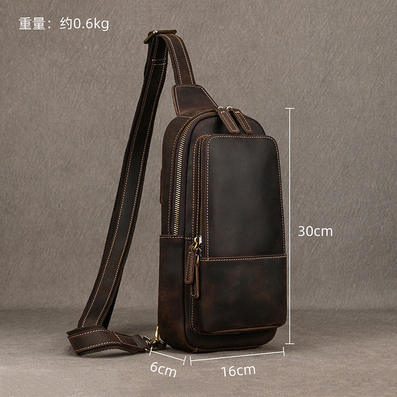 Design: Leather Chest Bag for Men Brown Mens Leather Chest Bag Chest Sling Bag for Men