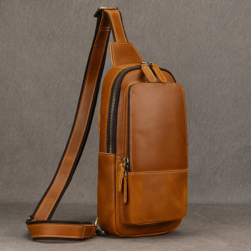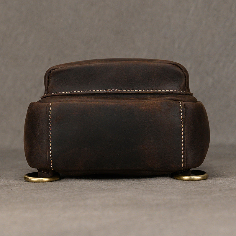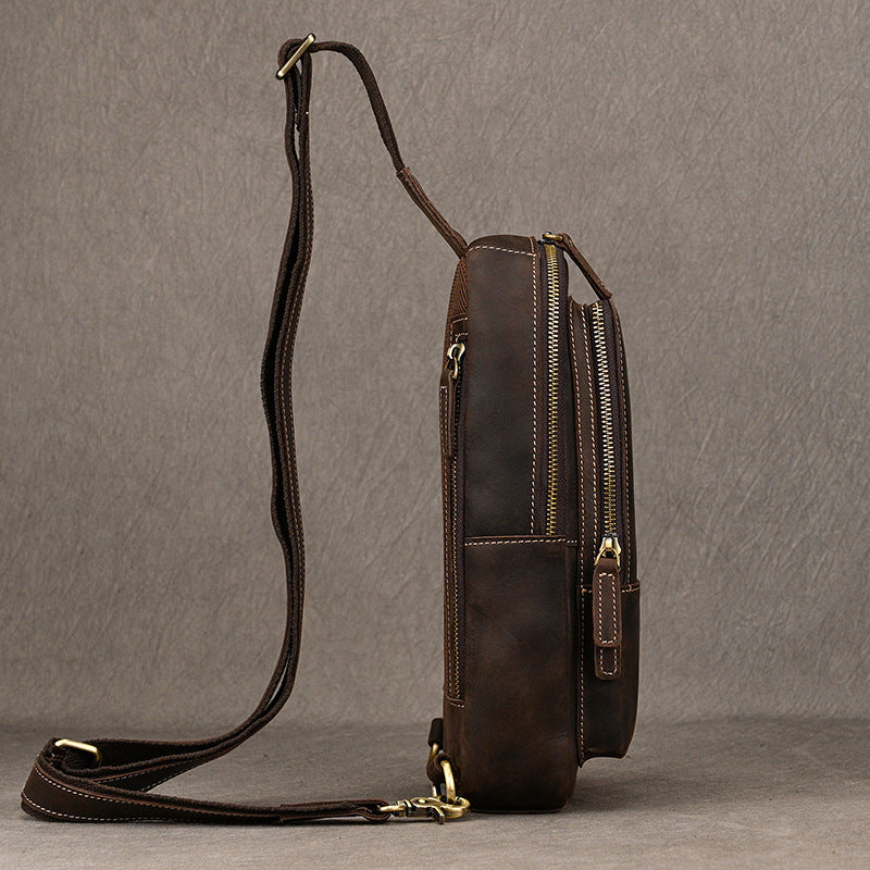Leather Chest Bag | Vintage Crazy Horse Leather Chest Sling for Men