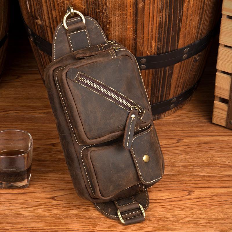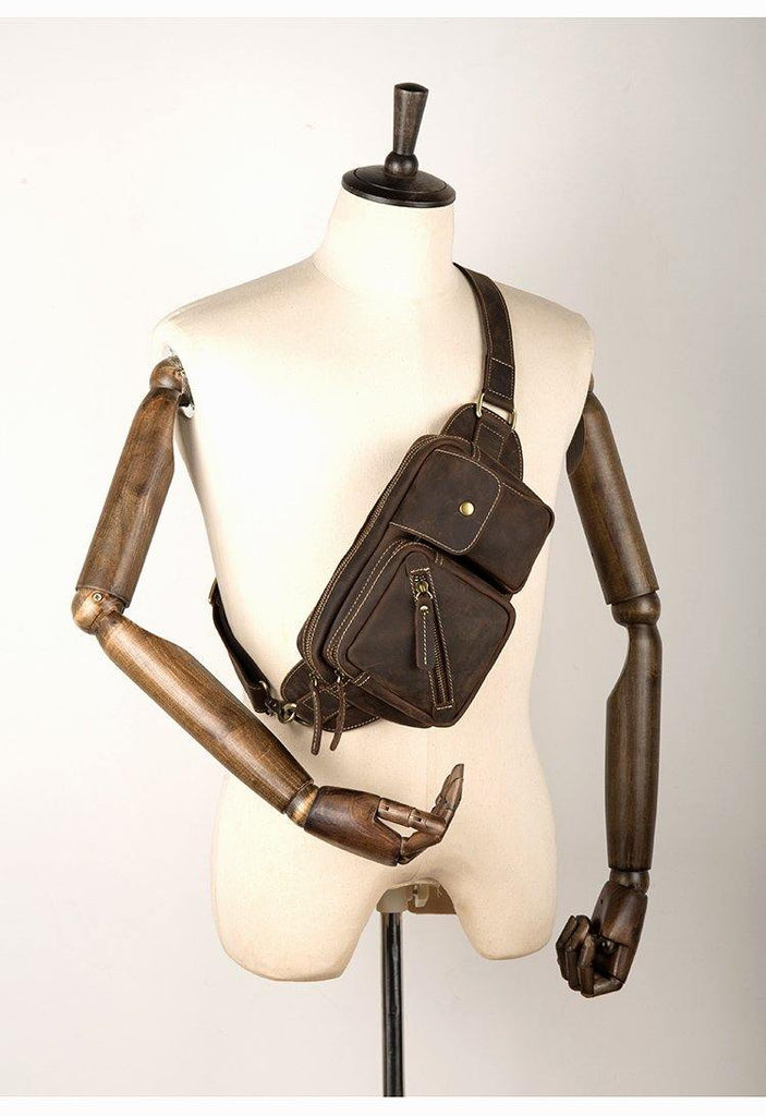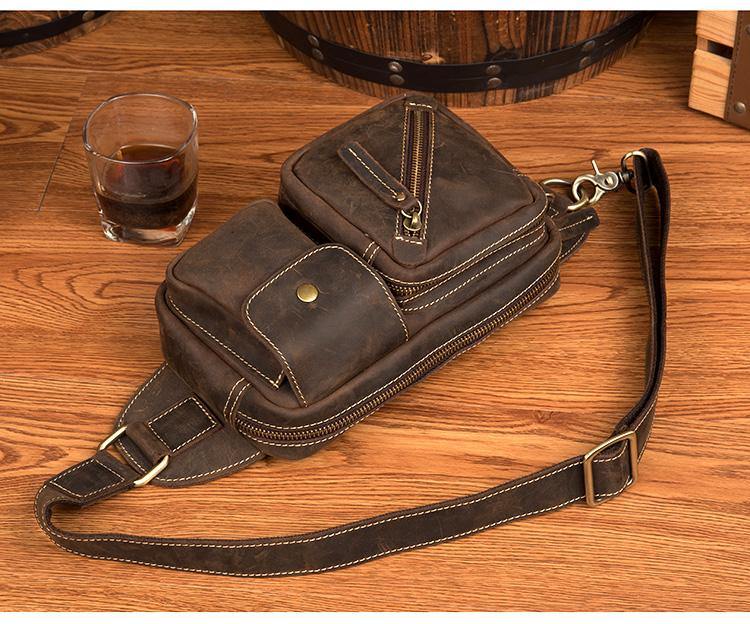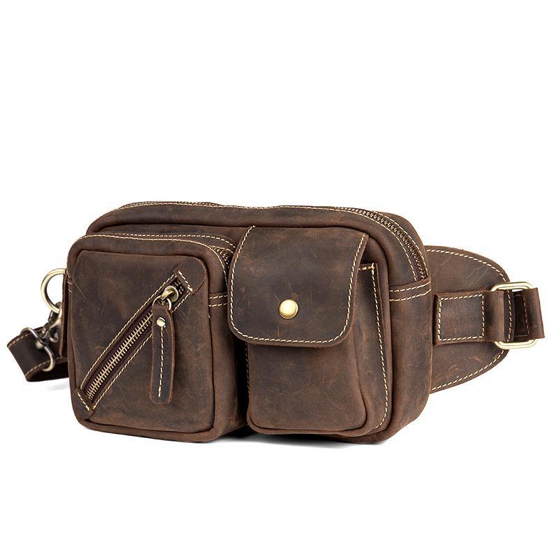 Design: Dark Brown Leather Fanny Pack Mens Waist Bags Hip Pack Belt Bags Bumbags for Men