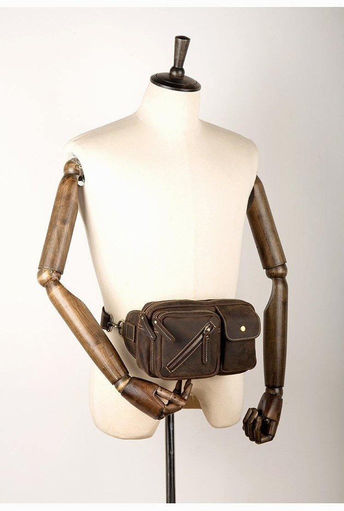 Style: Dark Brown Leather Fanny Pack Mens Waist Bags Hip Pack Belt Bags Bumbags for Men