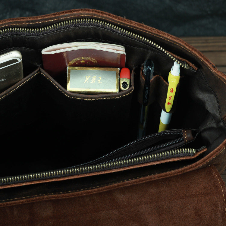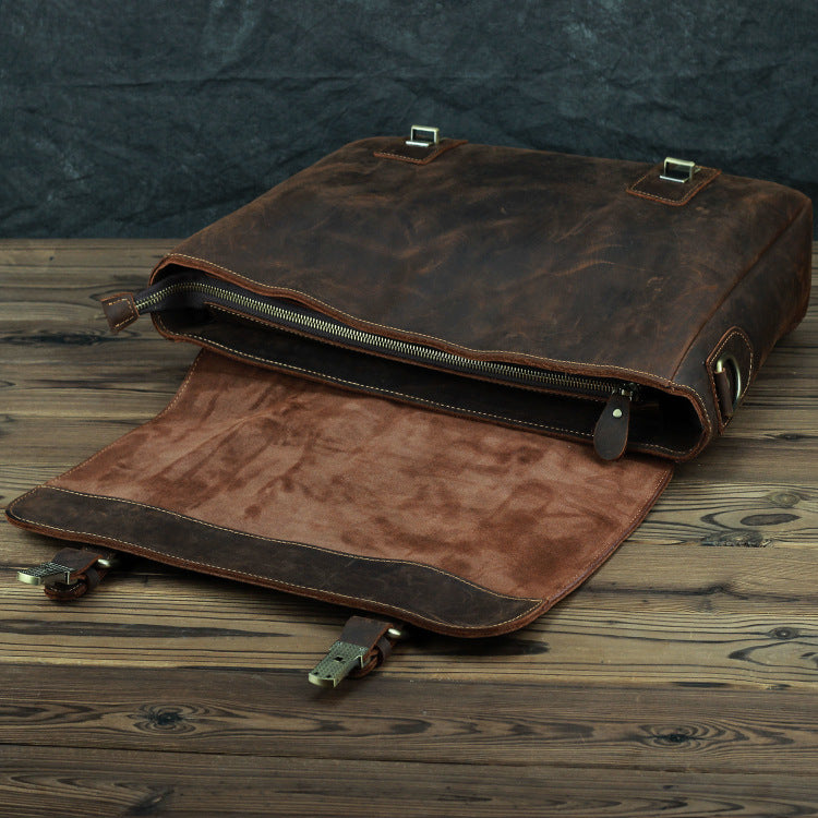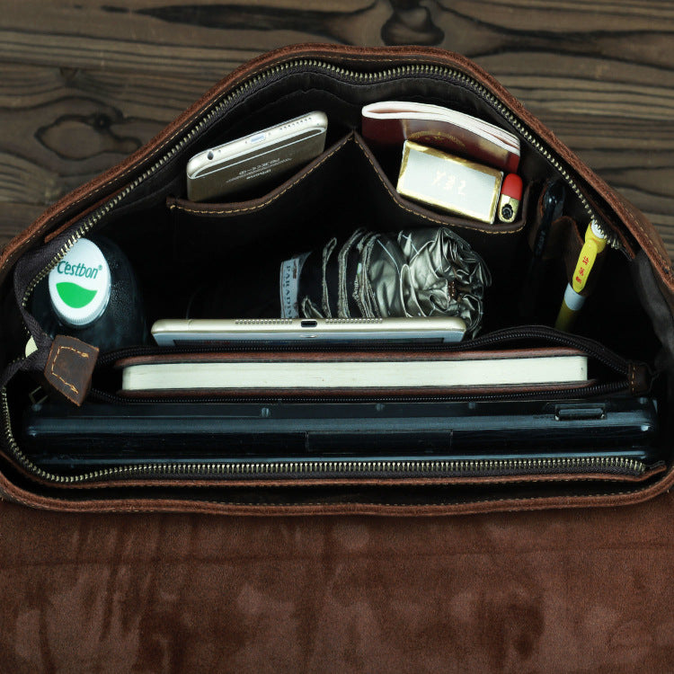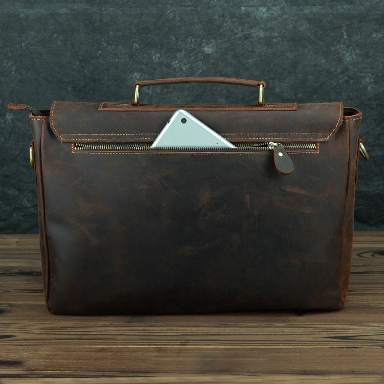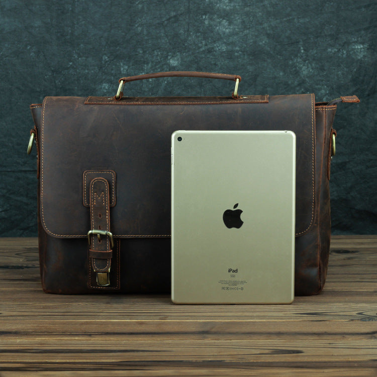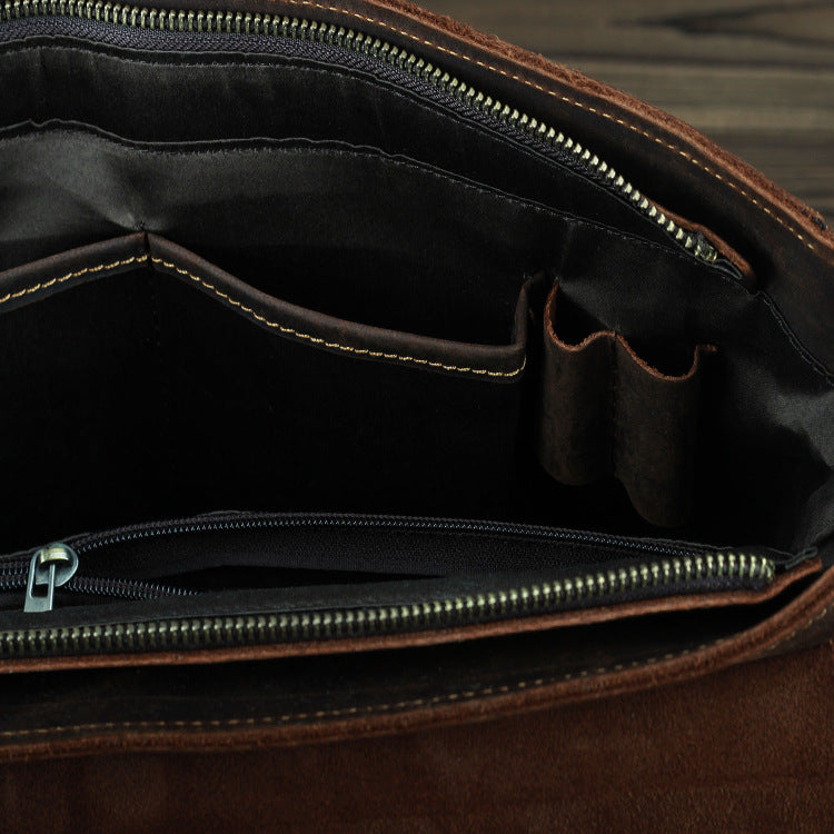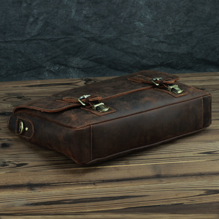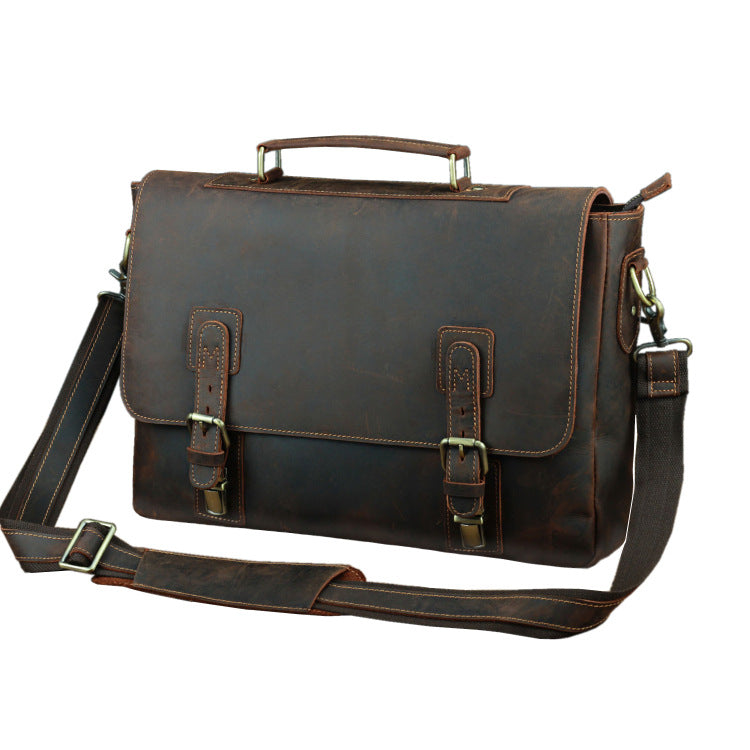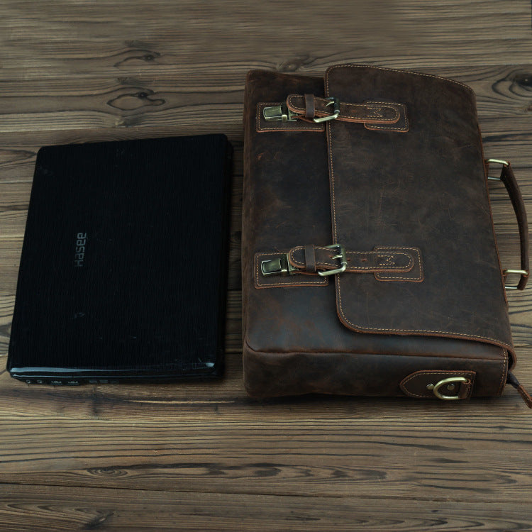Design: Dark Brown Leather Mens 15 inches Laptop Work Bag Handbag Briefcase Shoulder Bags Business Bags For MenOverview: