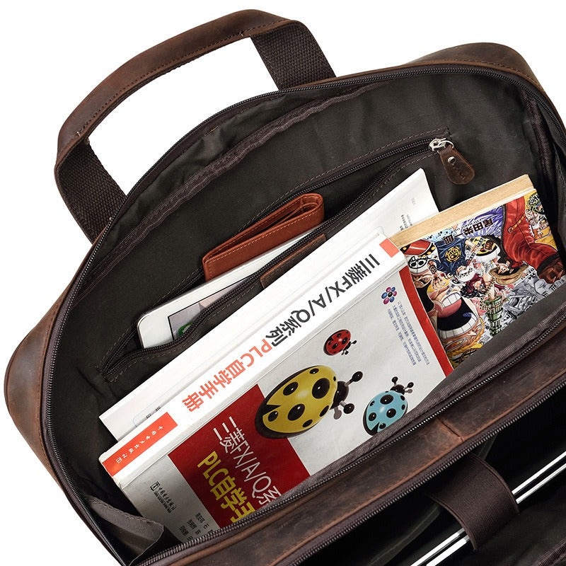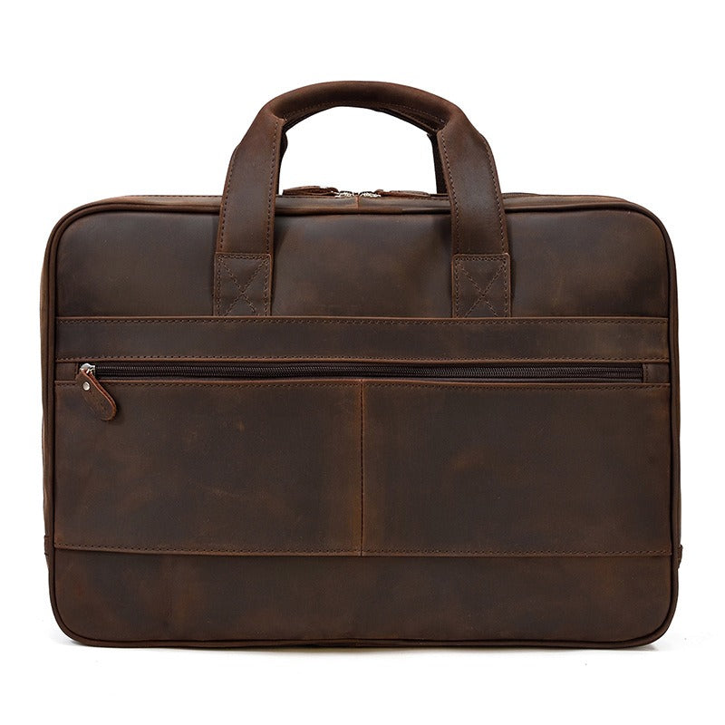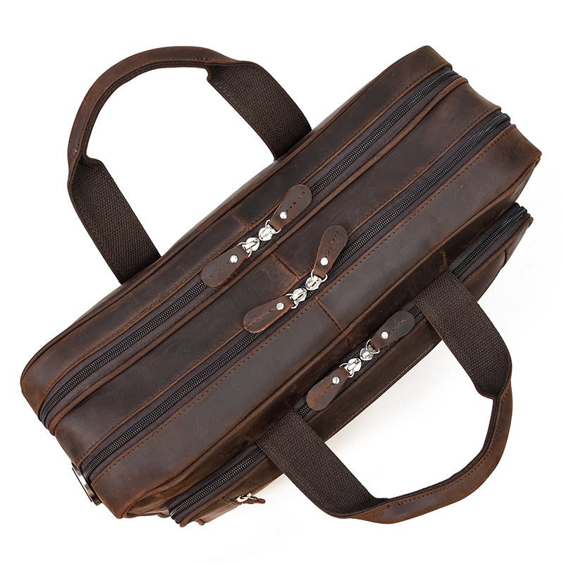 Design: Dark Brown Leather Mens 15 inches Large Laptop Work Bag Handbag Briefcase Side Bags Business Bags For MenOverview: