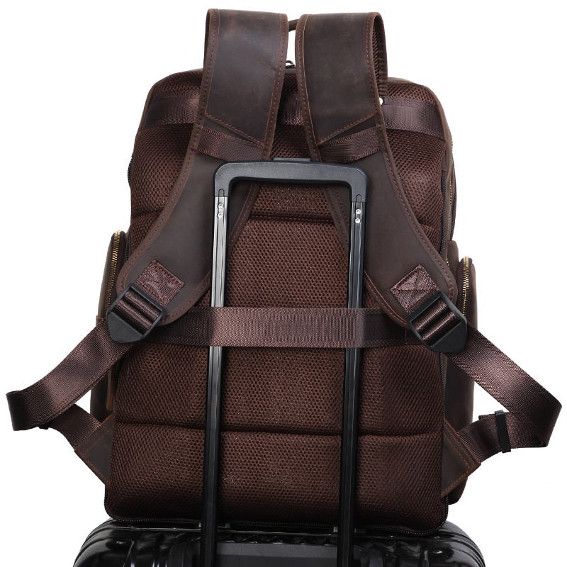 Design: Dark Brown Leather Men's 17-inch Computer Backpack Large Travel Backpack Large College Backpack For Men