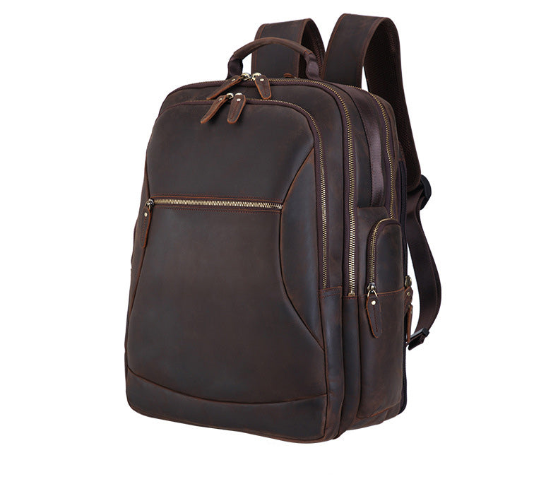 Design: Dark Brown Leather Men's 17-inch Computer Backpack Large Travel Backpack Large College Backpack For MenOverview: