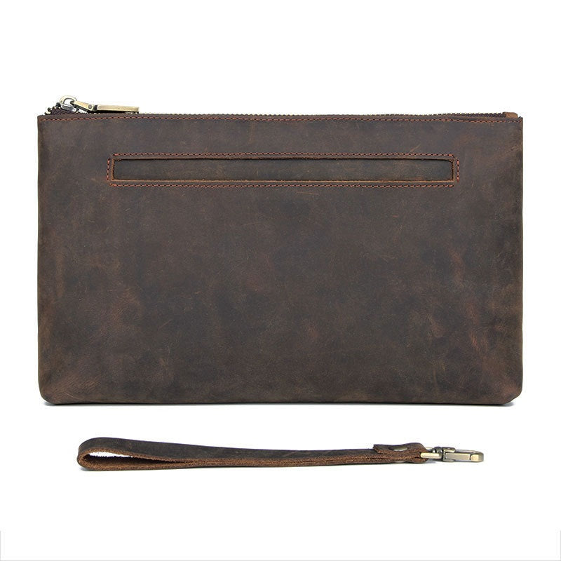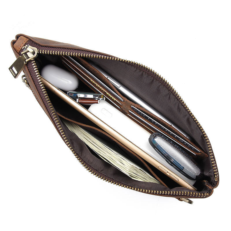 Design: Dark Brown Leather Mens Large Business Wristlet Wallet Bag Zipper Clutch Wallet For Men