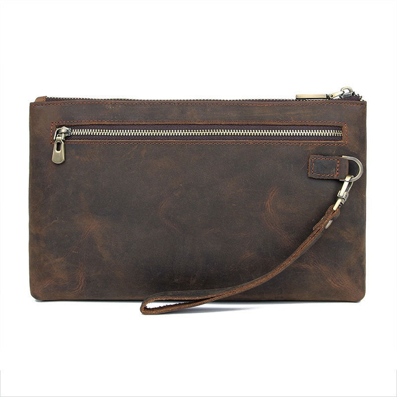 Style: Dark Brown Leather Mens Large Business Wristlet Wallet Bag Zipper Clutch Wallet For Men