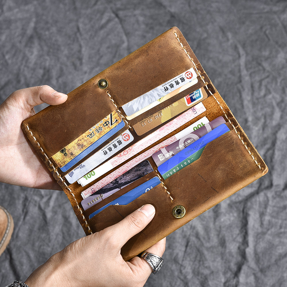 Style: Dark Brown Leather Mens Long Wallet Bifold Brown Clutch Phone Wallet For Men