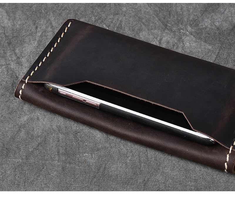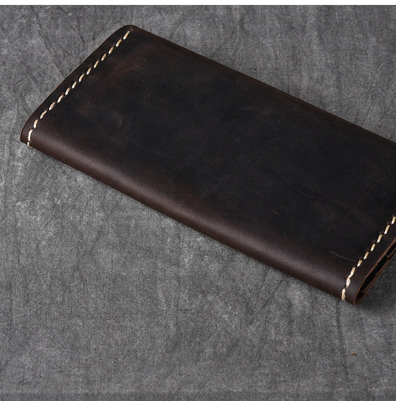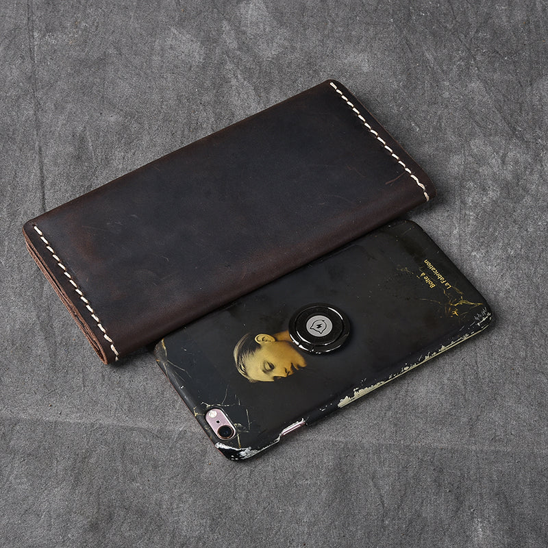 Design: Dark Brown Leather Mens Long Wallet Bifold Brown Clutch Phone Wallet For Men