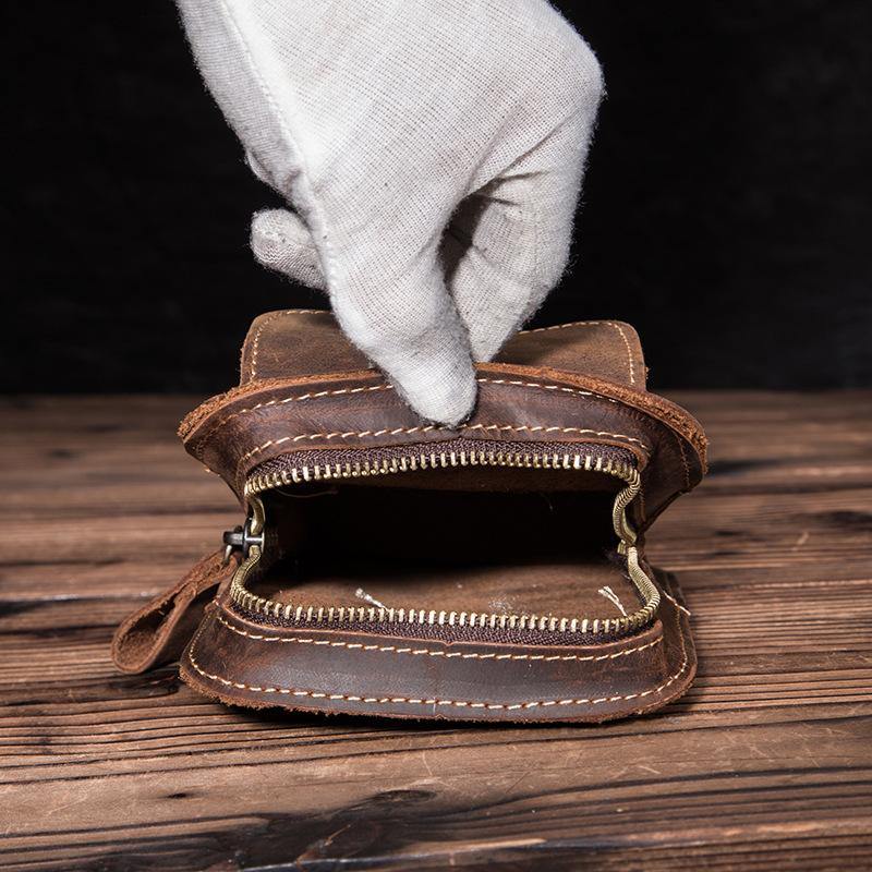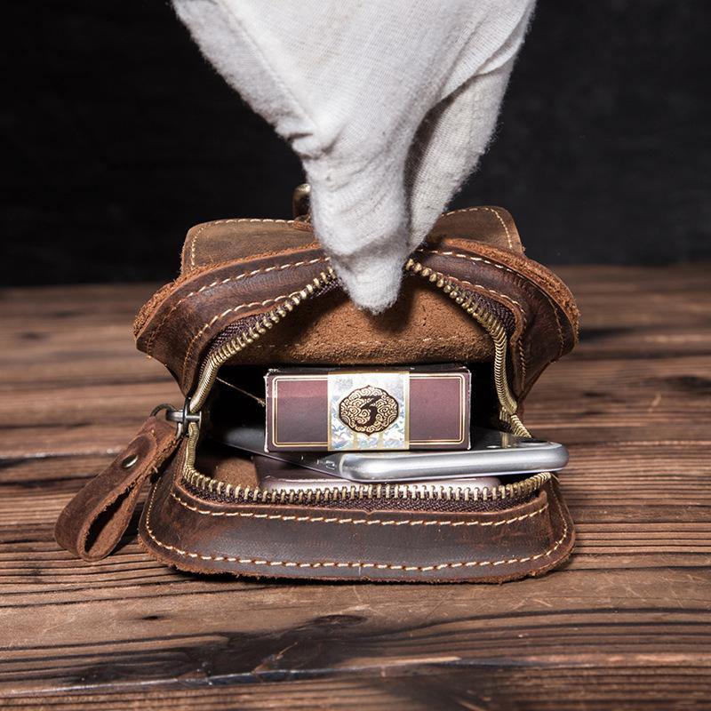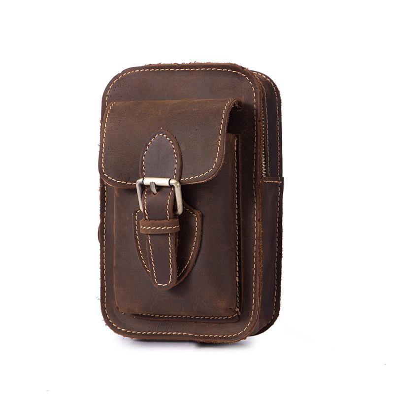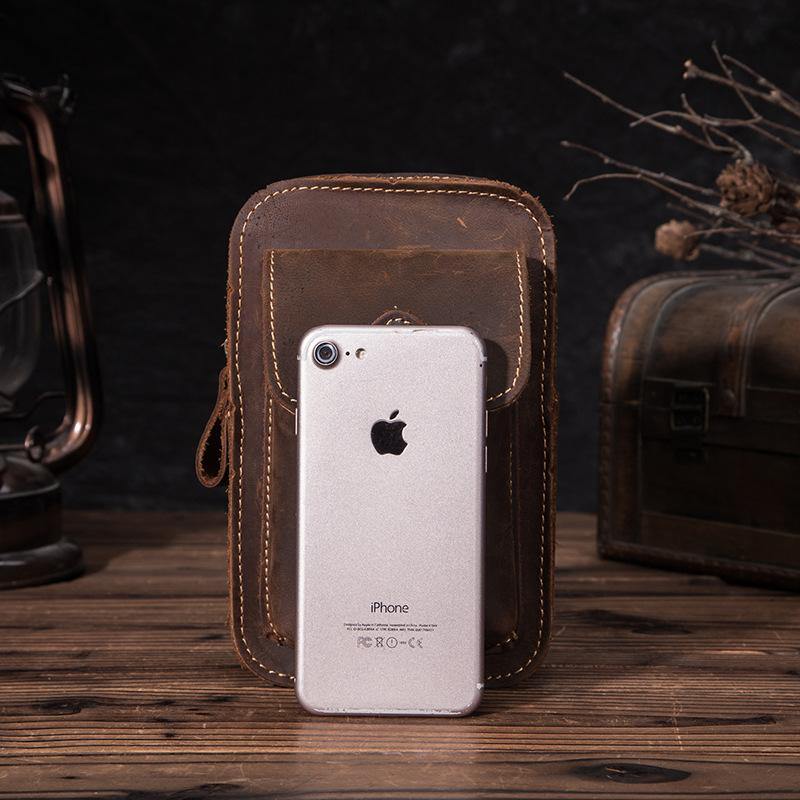 Design: Brown LEATHER MEN'S Phone Holster Small Belt Pouch Mini Waist Bag Vertical Phone Holster FOR MENOverview: