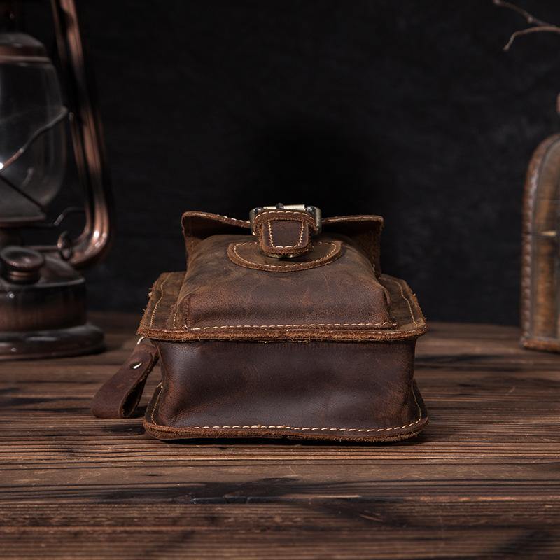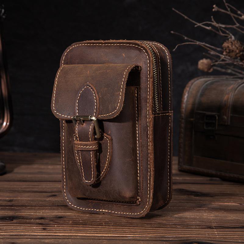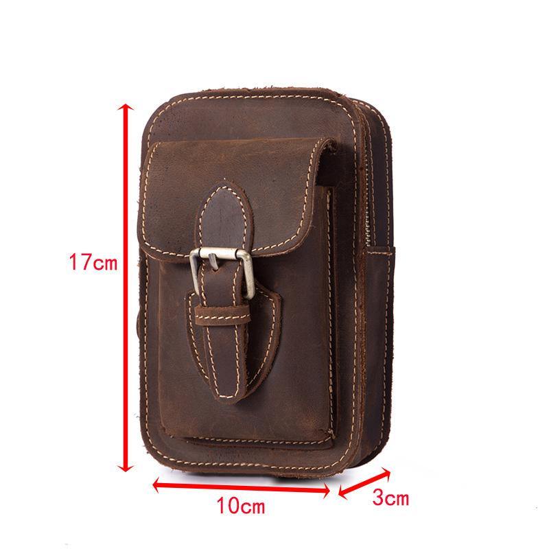 Design: Brown LEATHER MEN'S Phone Holster Small Belt Pouch Mini Waist Bag Vertical Phone Holster FOR MEN