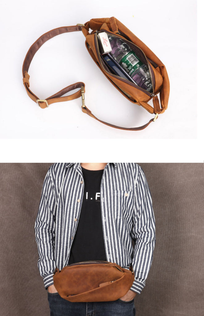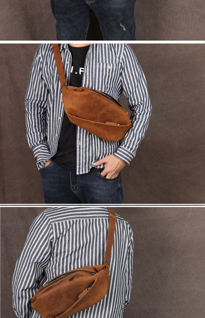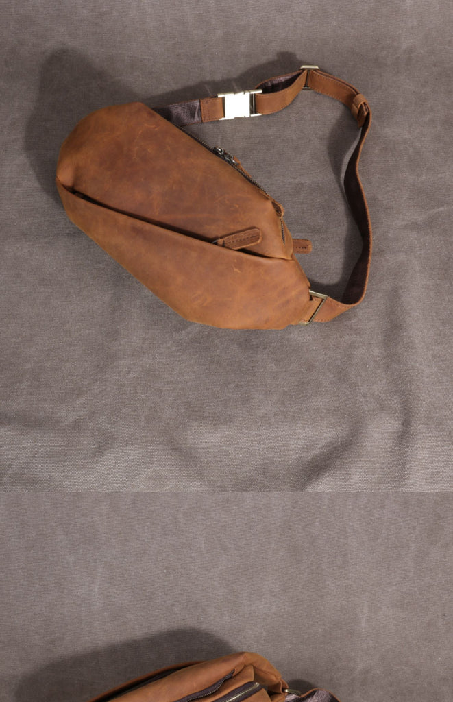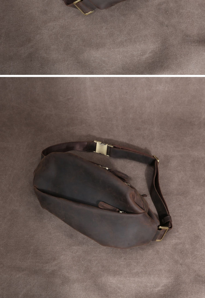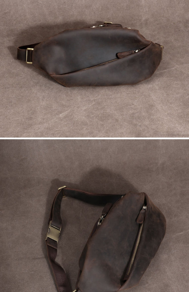Design: Dark Brown Cool Sling Bag Leather Waist Bag Mens Fanny Packs Leather Chest Pack Bum Bags for Men