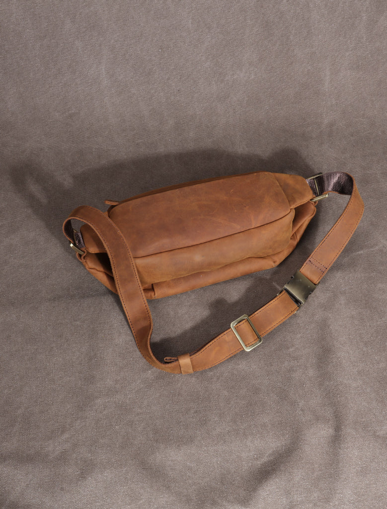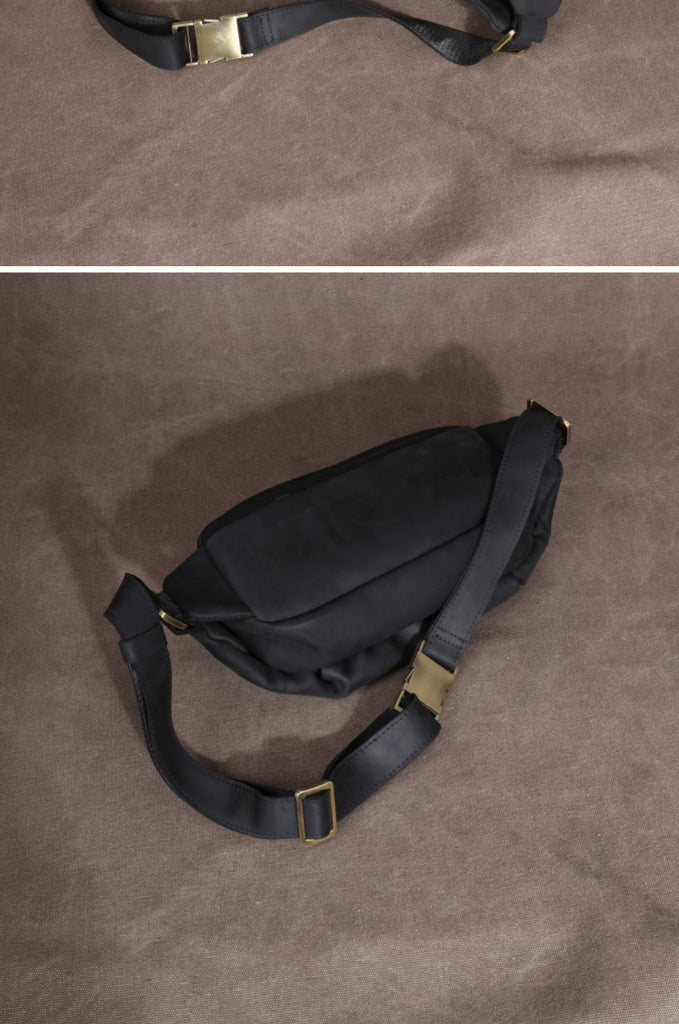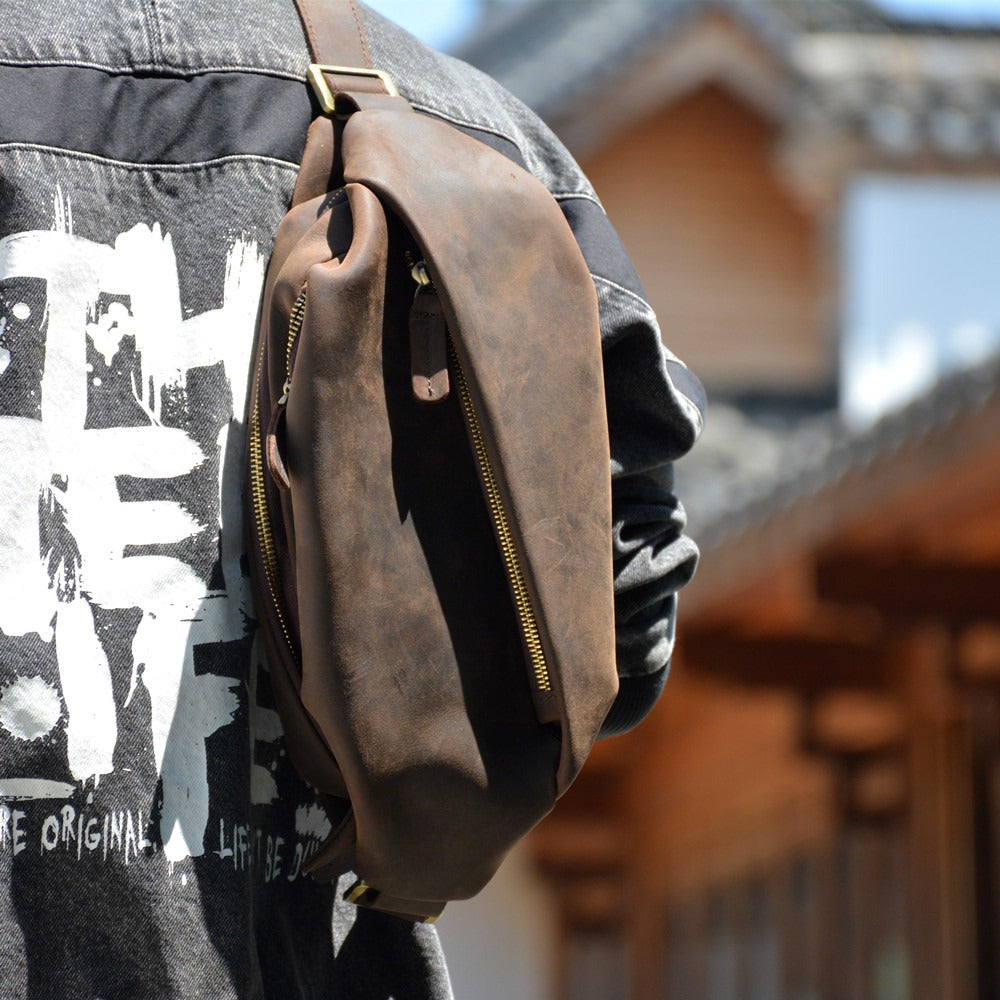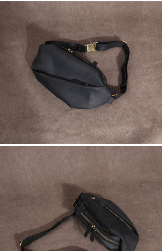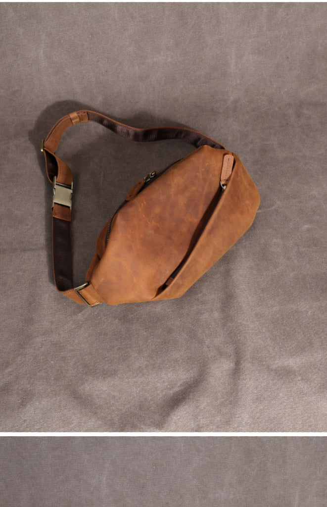 Design: Dark Brown Cool Sling Bag Leather Waist Bag Mens Fanny Packs Leather Chest Pack Bum Bags for Men