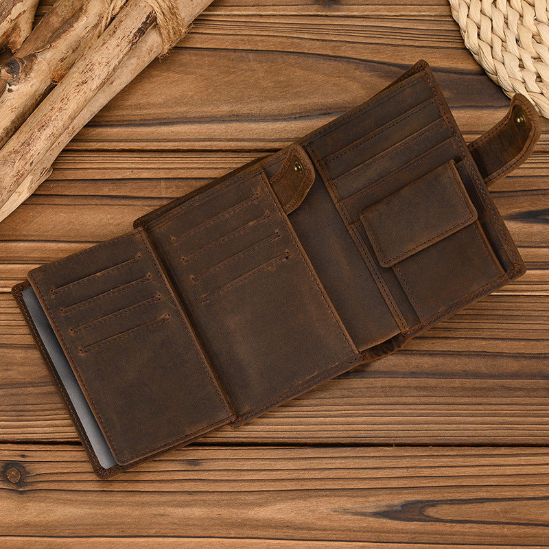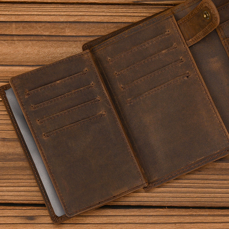 Leather Vertical Bifold Wallet with Buckle | Vintage Crazy Horse Leather Organizer