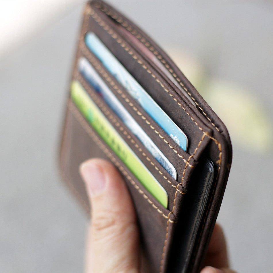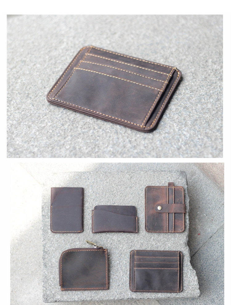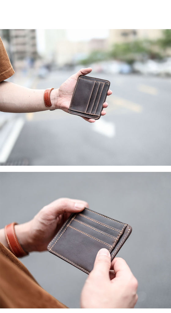 Design: Dark Brown Slim Leather Mens Card Wallet Small Card Holder Front Pocket Wallet For Men