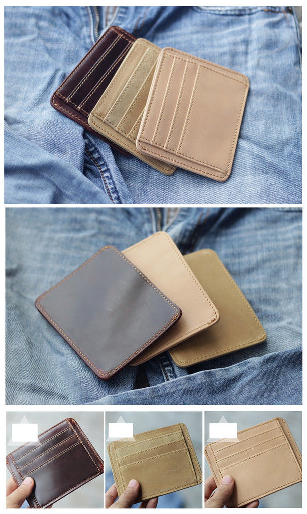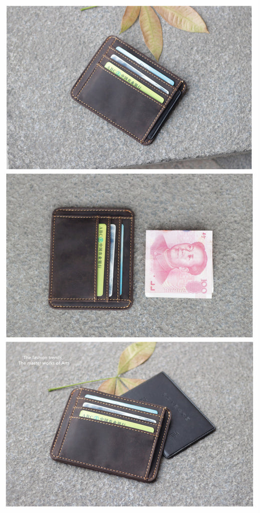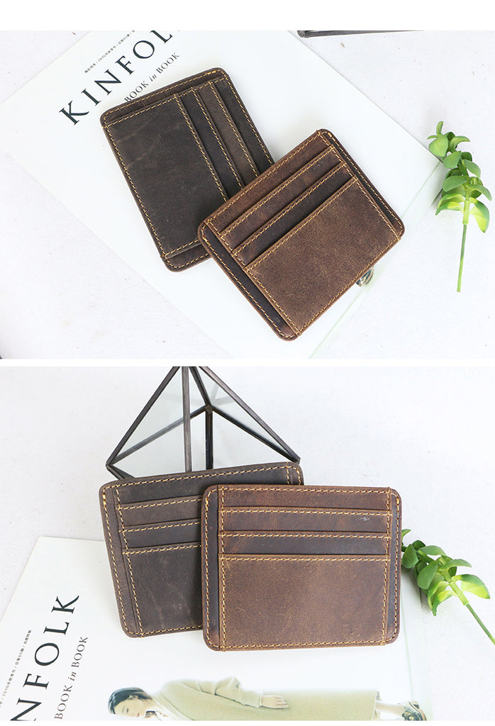 Style: Dark Brown Slim Leather Mens Card Wallet Small Card Holder Front Pocket Wallet For Men